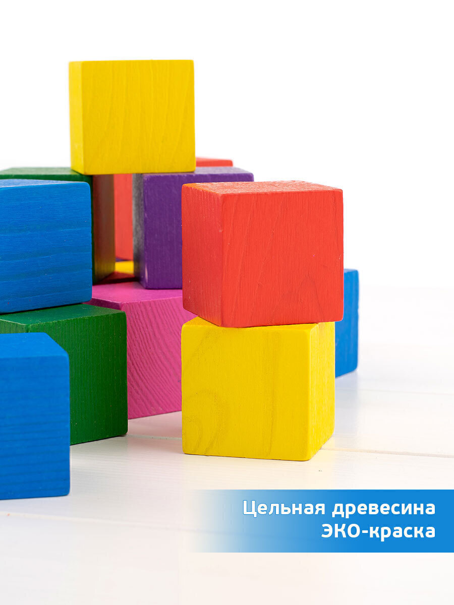 Деревянный конструктор детский "Цветной", 65 деталей, для малышей от 3х лет, Томик