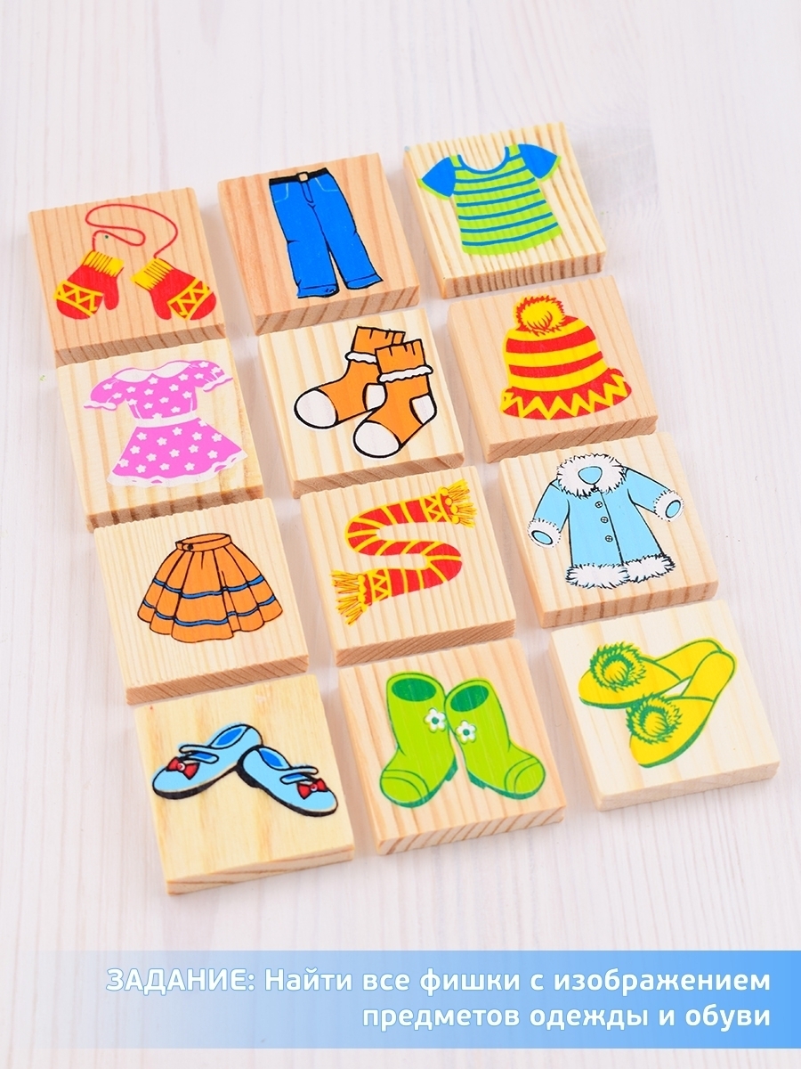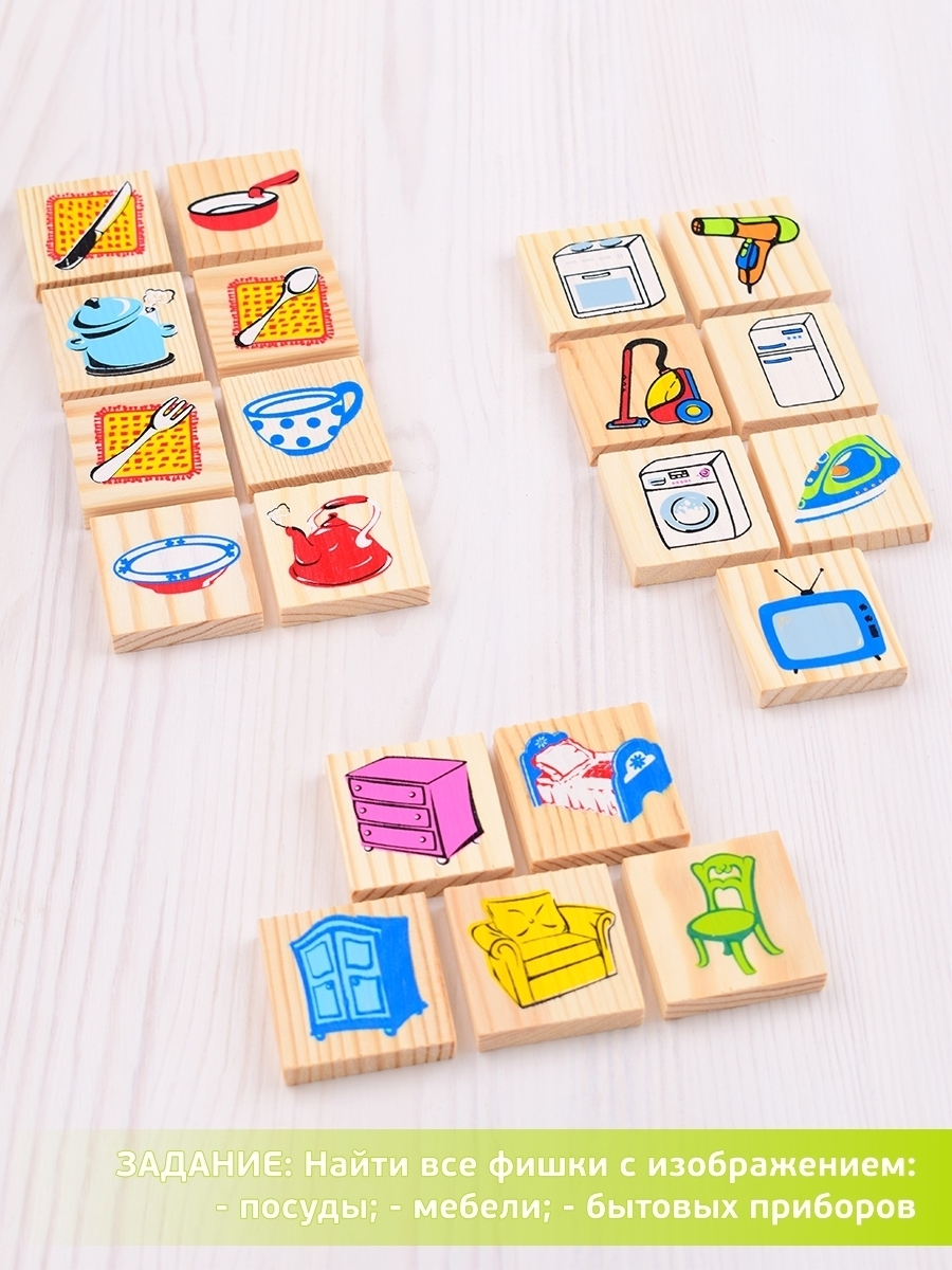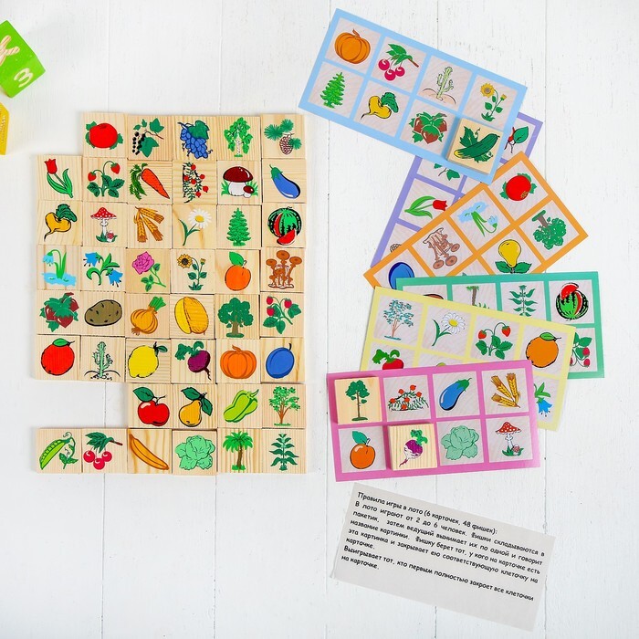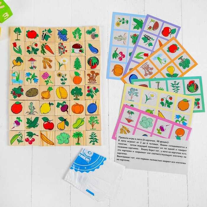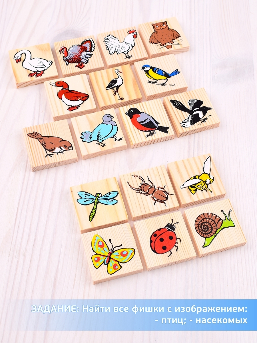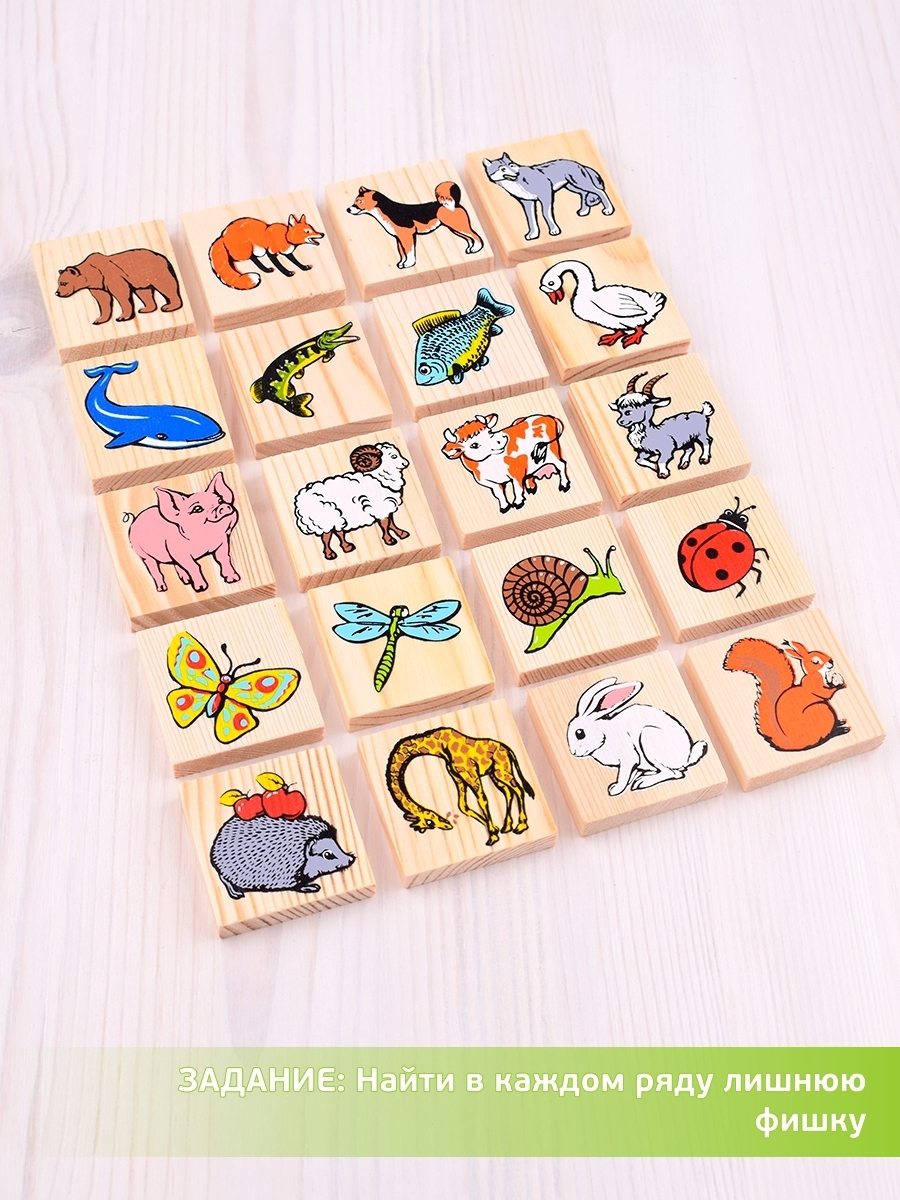 Деревянное лото Томик "Животный мир", развивающая настольная игра для малышей, 6 карточек + 48 фишек