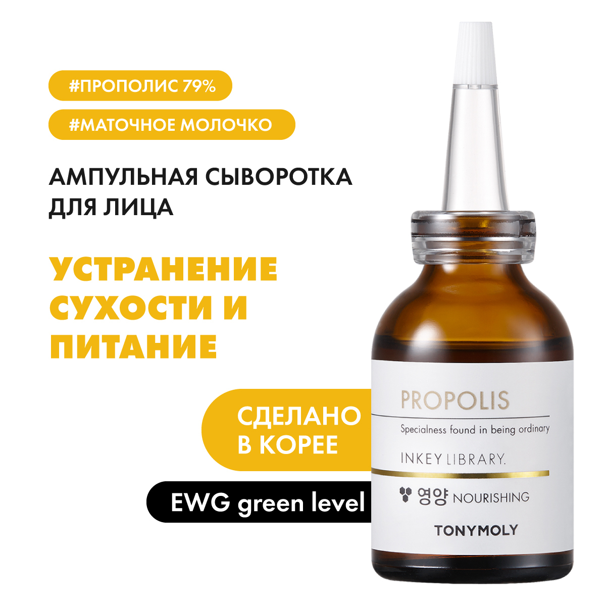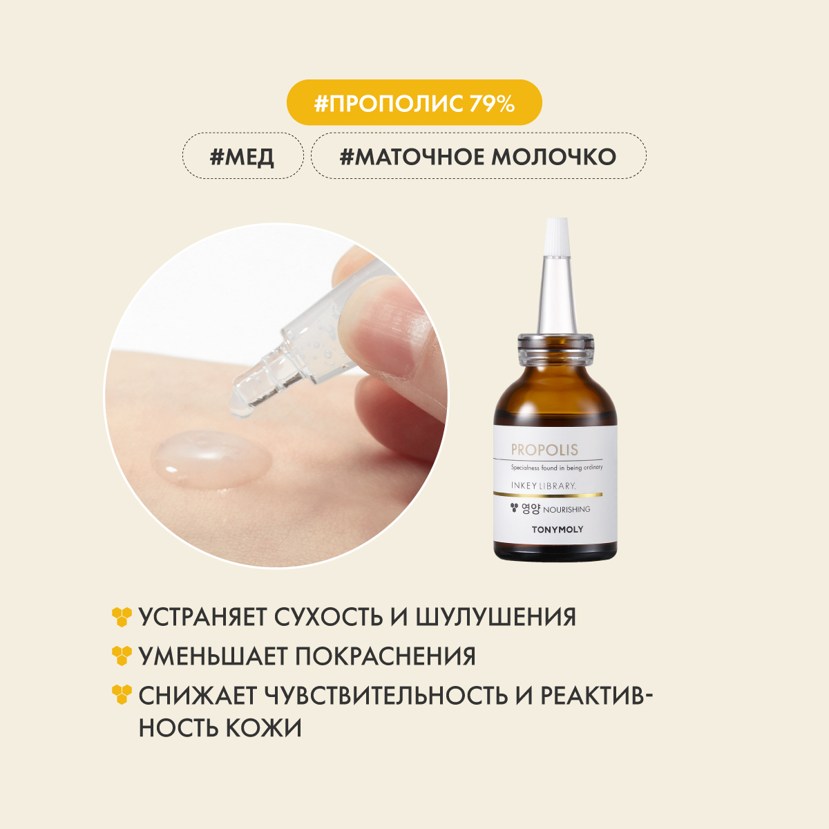 Tony Moly Ампульная сыворотка для лица / c прополисом / увлажняющая / питательная / успокаивающая / Корея Inkey Library Propolis Ampoule, 30 мл