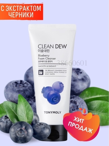 Tony Moly Пенка для умывания лица / с голубикой / тонизирующая / для сияния кожи / Корея Clean Dew Blueberry Foam, 180 мл.