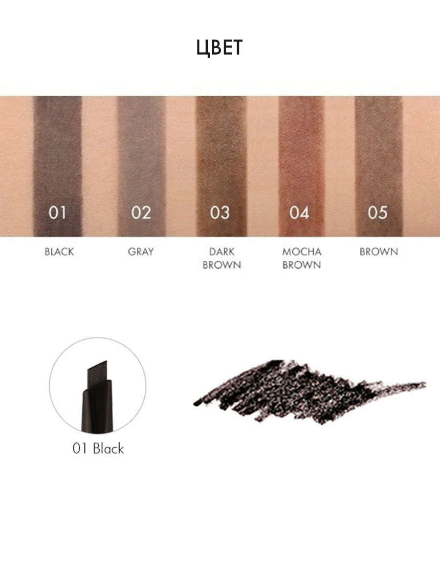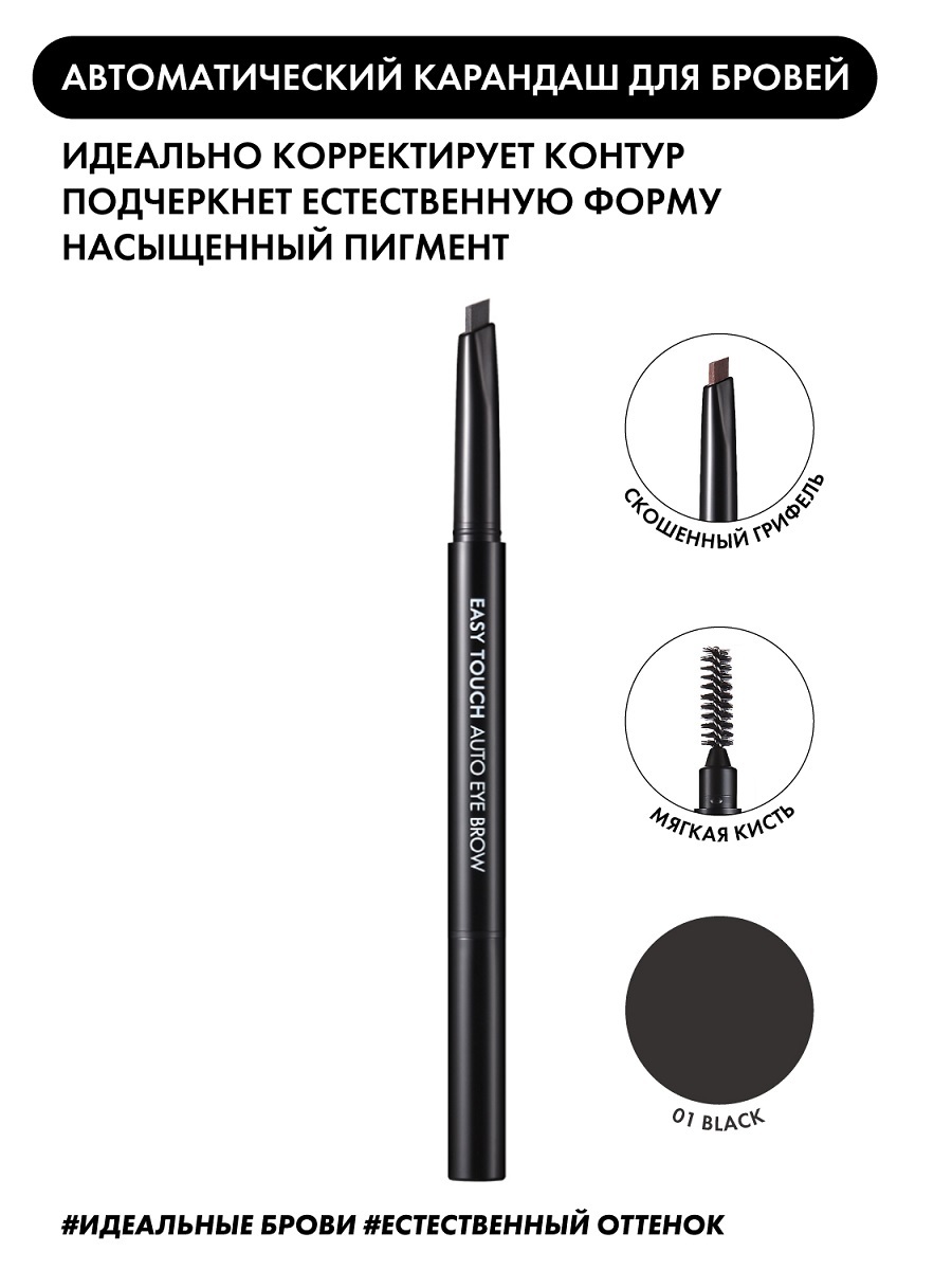 Tony Moly Карандаш для бровей / автоматический / скошенный / стойкий / с щеточкой / Корея Easy Touch Auto Eyebrow, оттенок 01 Black