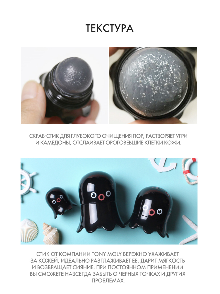 Tony Moly Скраб-стик для удаления черных точек глубоко очищает, сужает поры, матирует кожу Tako Pore Black Head Scrub Stick, 10 гр