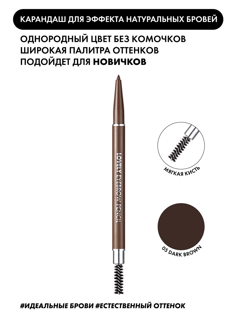 Tony Moly Карандаш для бровей автоматический с щеточкой Lovely Eyebrow Pencil, 05 Dark Brown