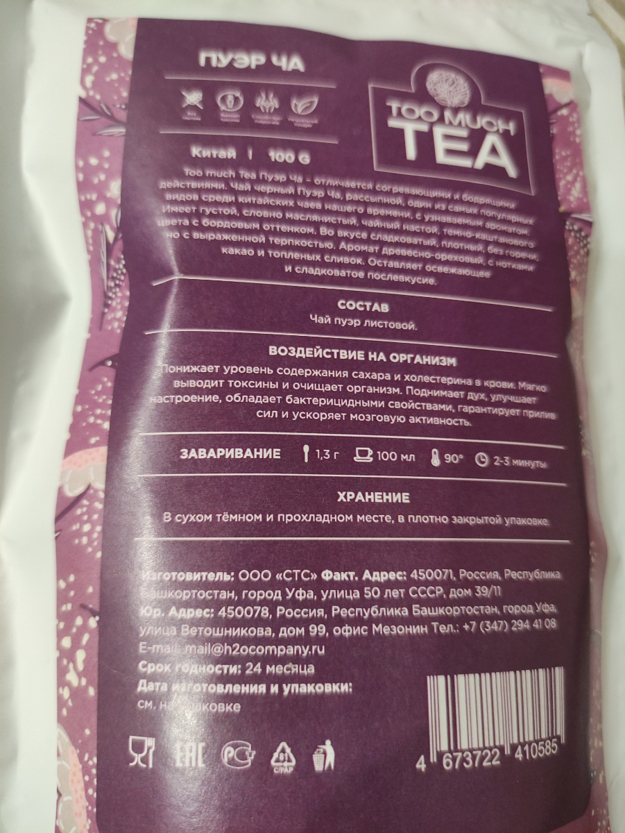 Чай Черный Шу Пуэр Ча Китайский, 100г. Натуральный Листовой Чай Пуэр