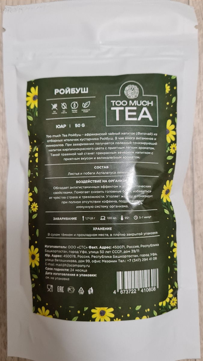 Травяной Чай Ройбуш Натуральный, 50г. Чай Ройбос
