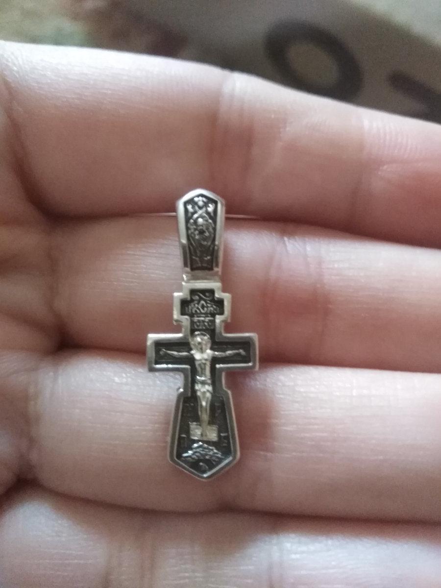 TOP CRYSTAL Подвеска Крест нательный с Распятием Иисуса Христа и Молитвой Честному Кресту Господню