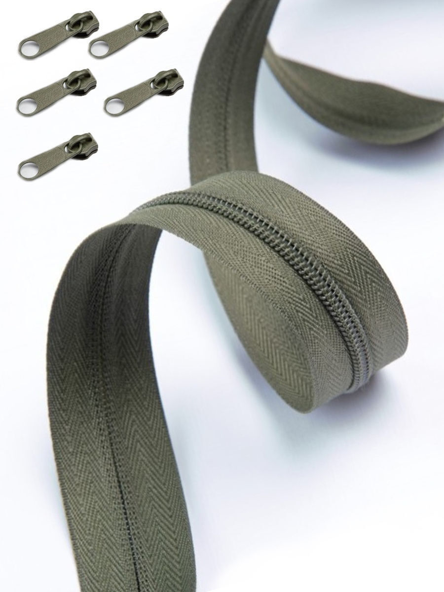 Рулонная молния тип 5 длина 5 метров. + бегунок-слайдер в цвет 5 шт, Хаки Top Striker