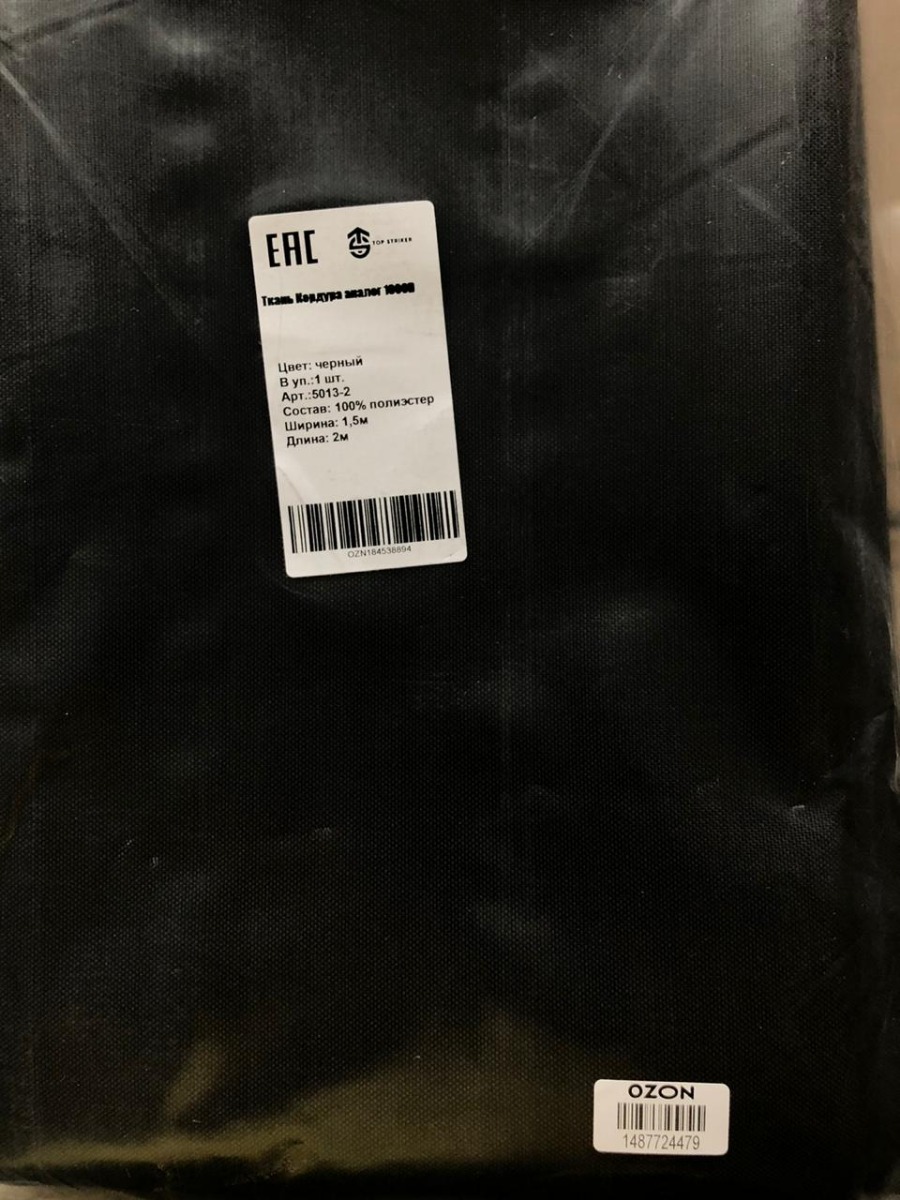 Ткань Cordur (Аналог Кордуры) 1000D 310г/м2 черный-5 м