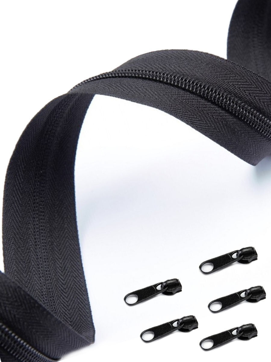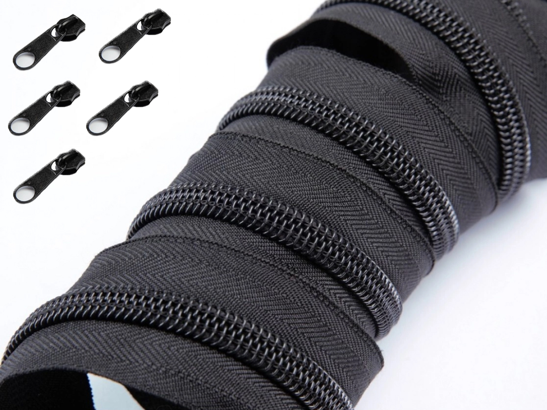 Рулонная молния №10 длина 5 м. + бегунок-слайдер в цвет 5 шт, Черный Top Striker
