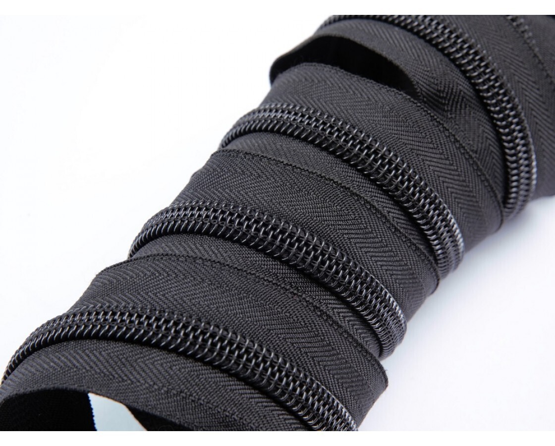 Рулонная молния тип 5 длина 5 метров. + бегунок-слайдер в цвет 5 шт, Черный Top Striker