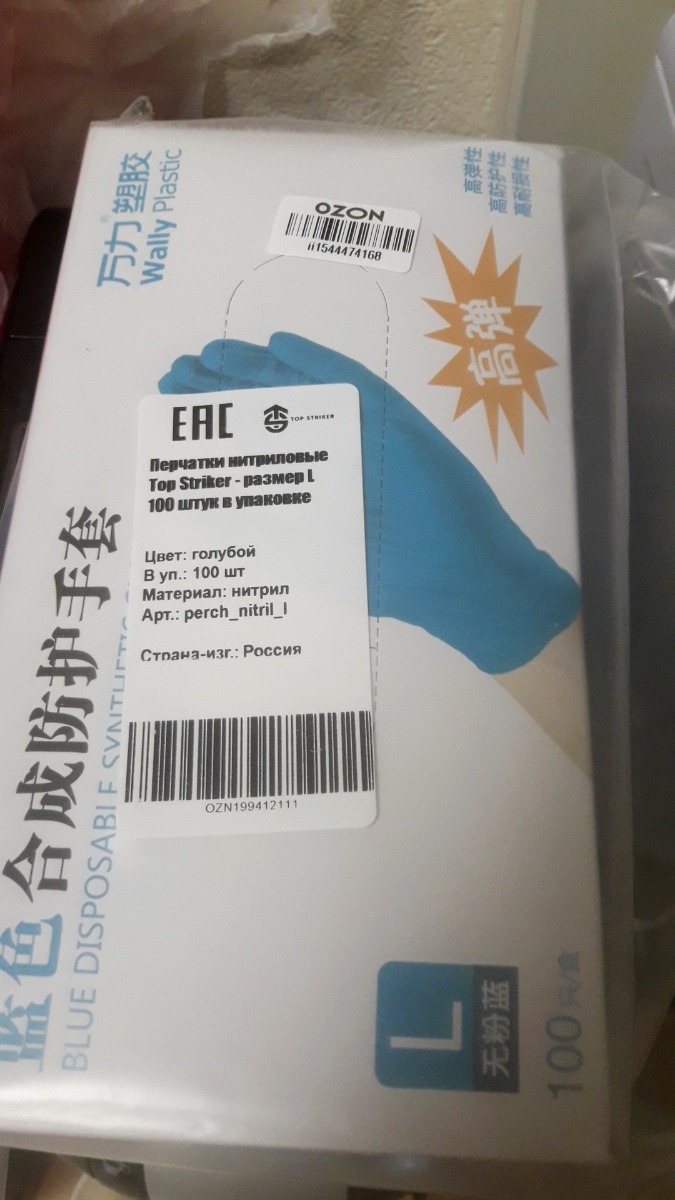 Перчатки медицинские Top Striker, 100 шт, M, Нитрил, синий