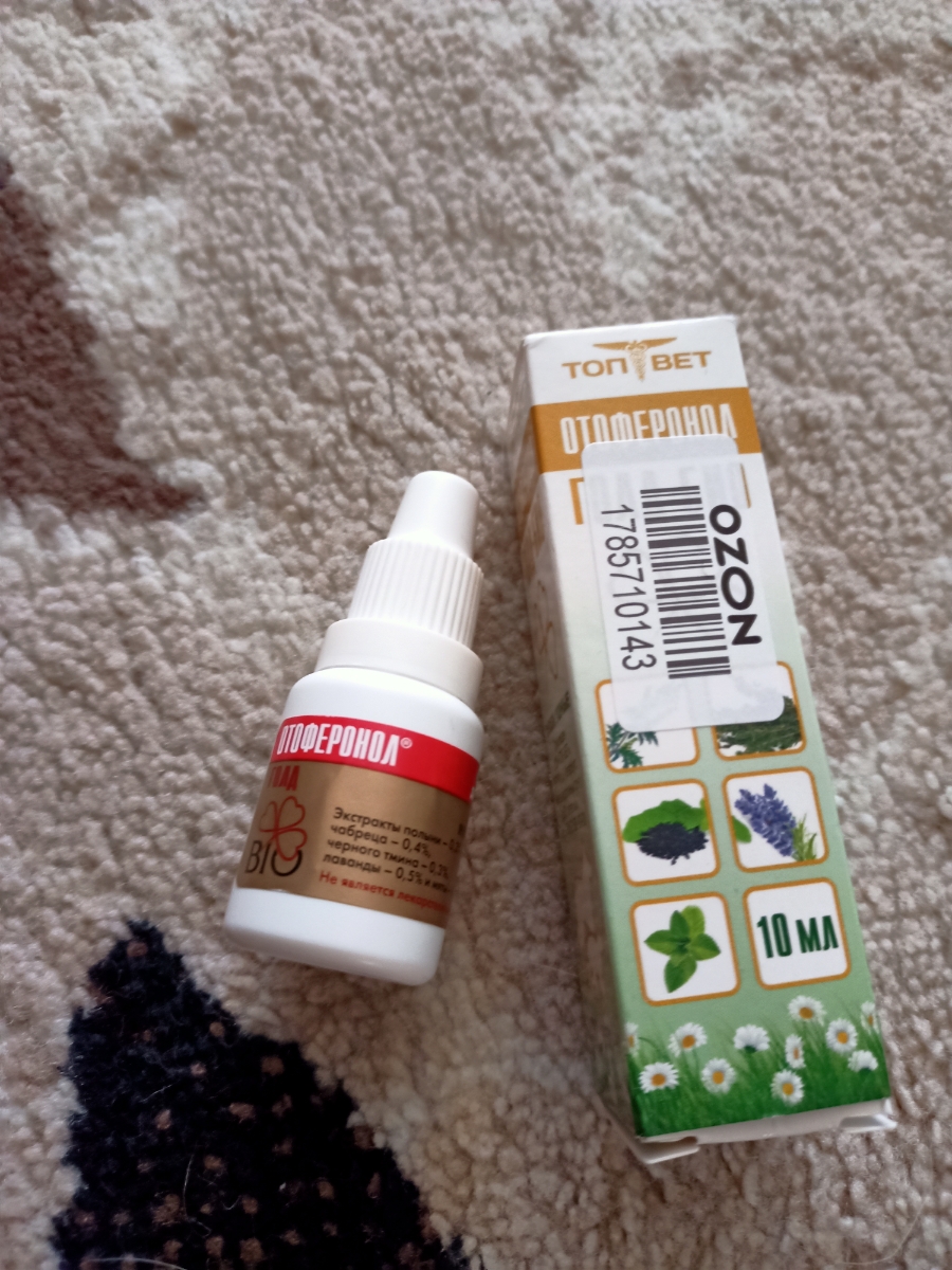 Капли ушные для кошек и собак ТОП-ВЕТ, "Отоферонол Био, зоогигиеническое средство, 10мл