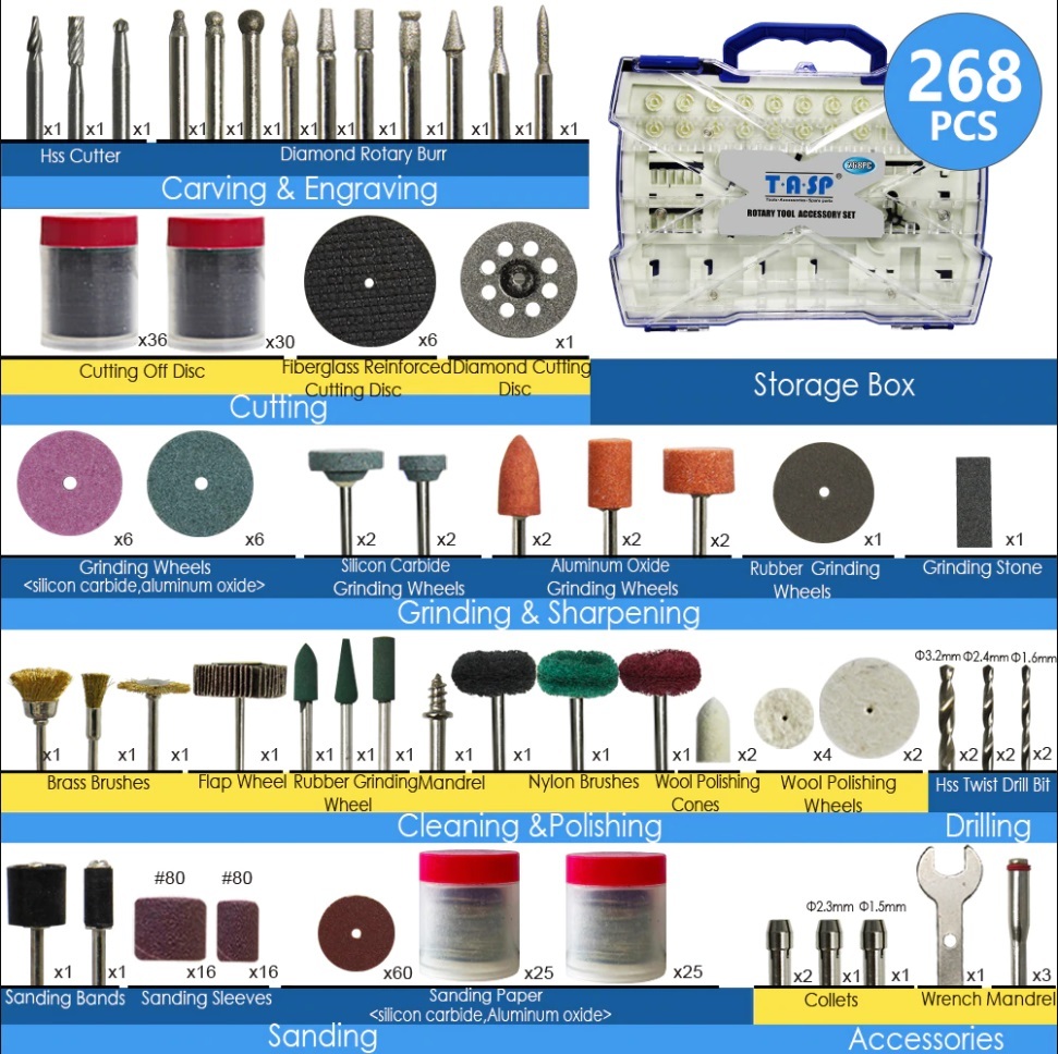 Набор бит насадок на гравер Dremel 268 шт., для шлифования, полировки, резки, абразивные наборы инструментов