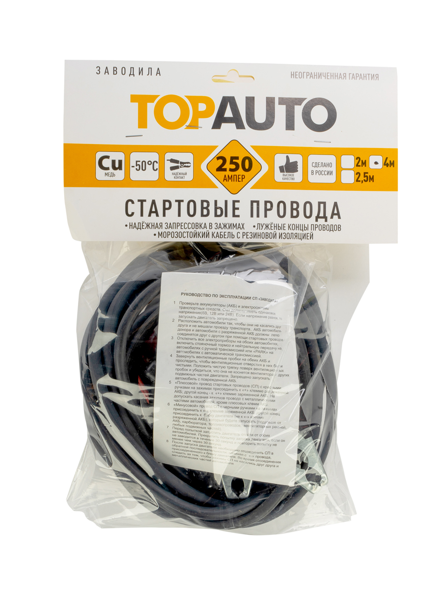 Стартовые провода "ЗавоДилА" 250 Ампер длина 4,0 метра