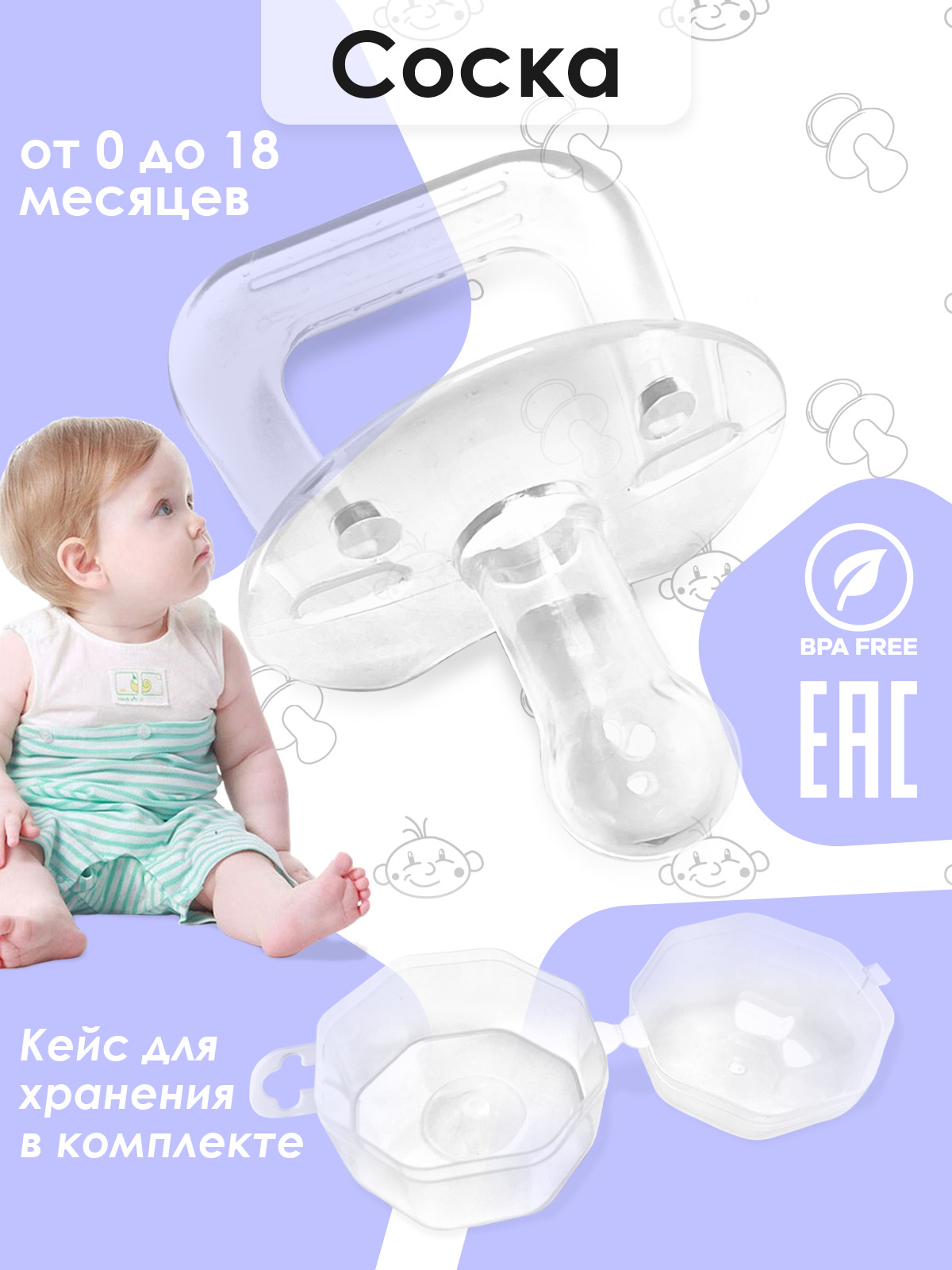 Соска пустышка для малышей, детские пустышки из пищевого силикона, мягкая силиконовая соска, футляр.