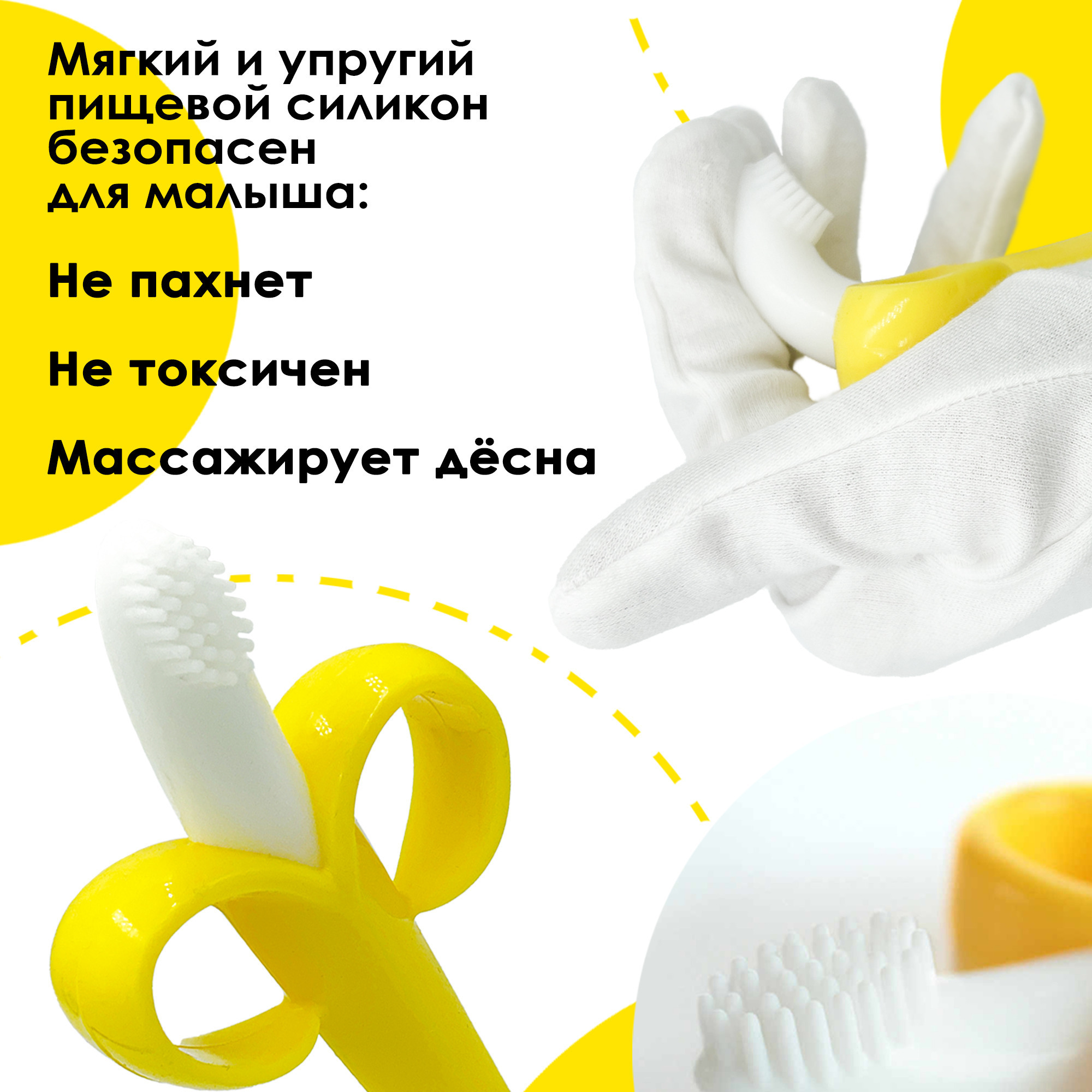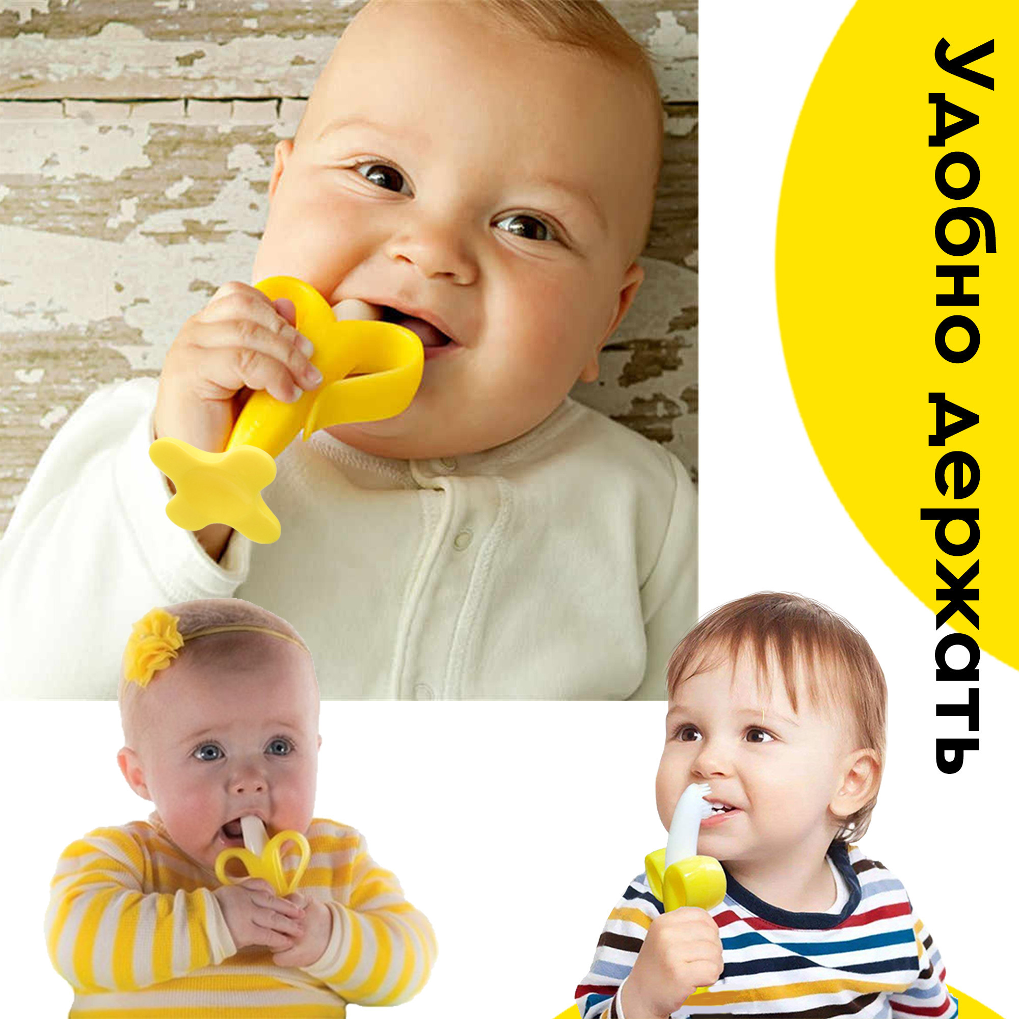 Зубная щетка детская для малышей, детский грызунок, силиконовый прорезыватель для зубов банан.