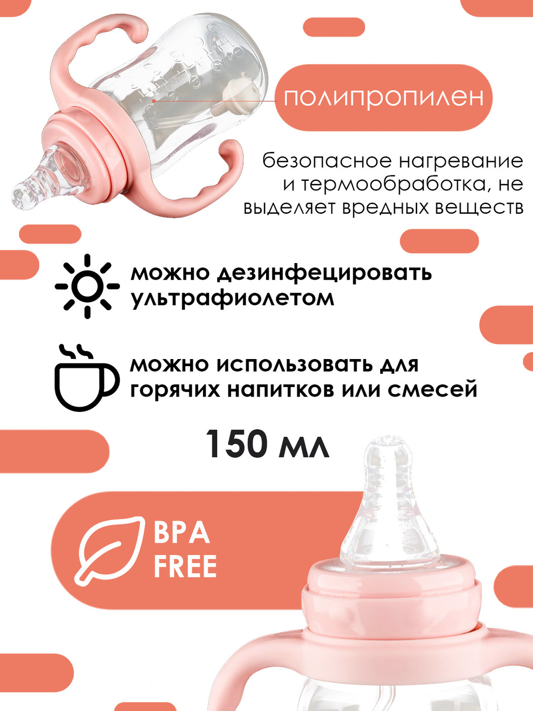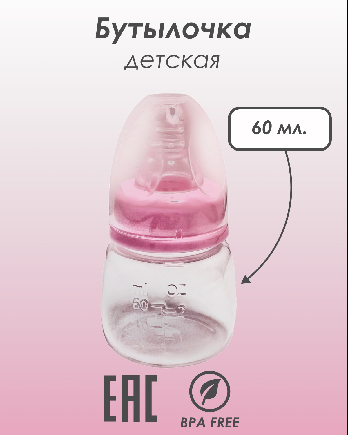 Бутылочка антиколиковая для кормления для новорожденных, поильник для воды 60 мл