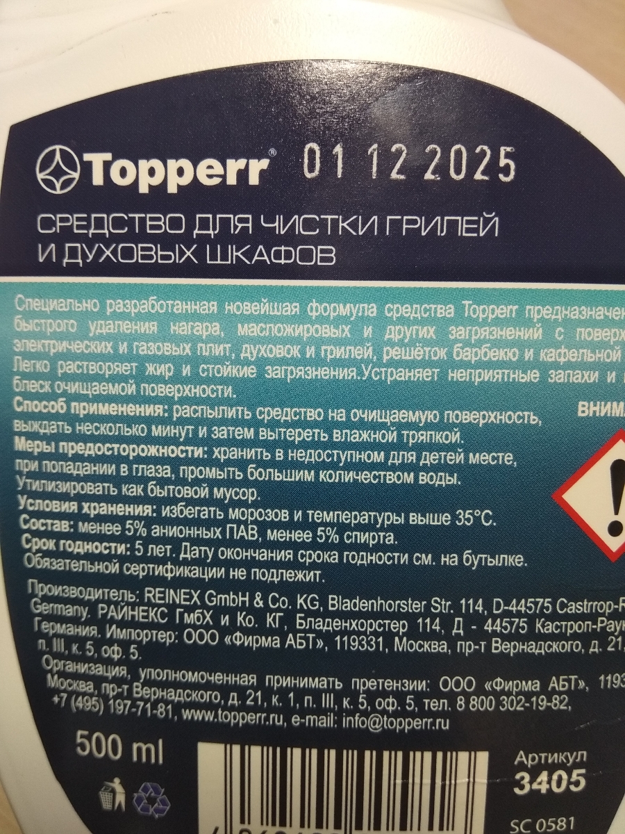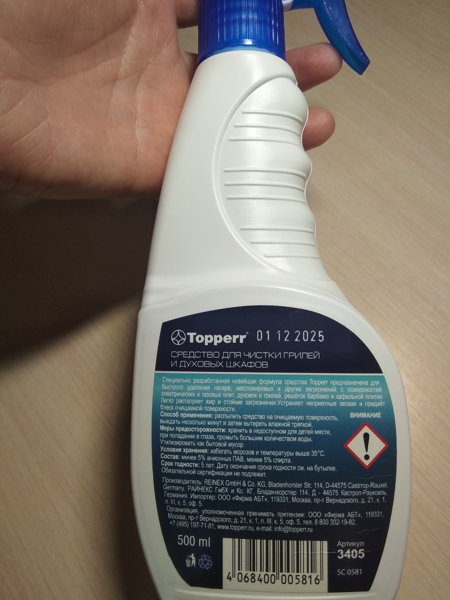 Спрей "Topperr" для чистки духовок и грилей, 500 мл