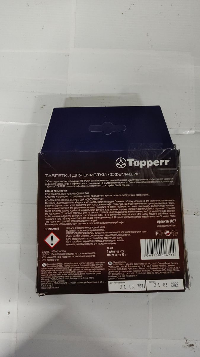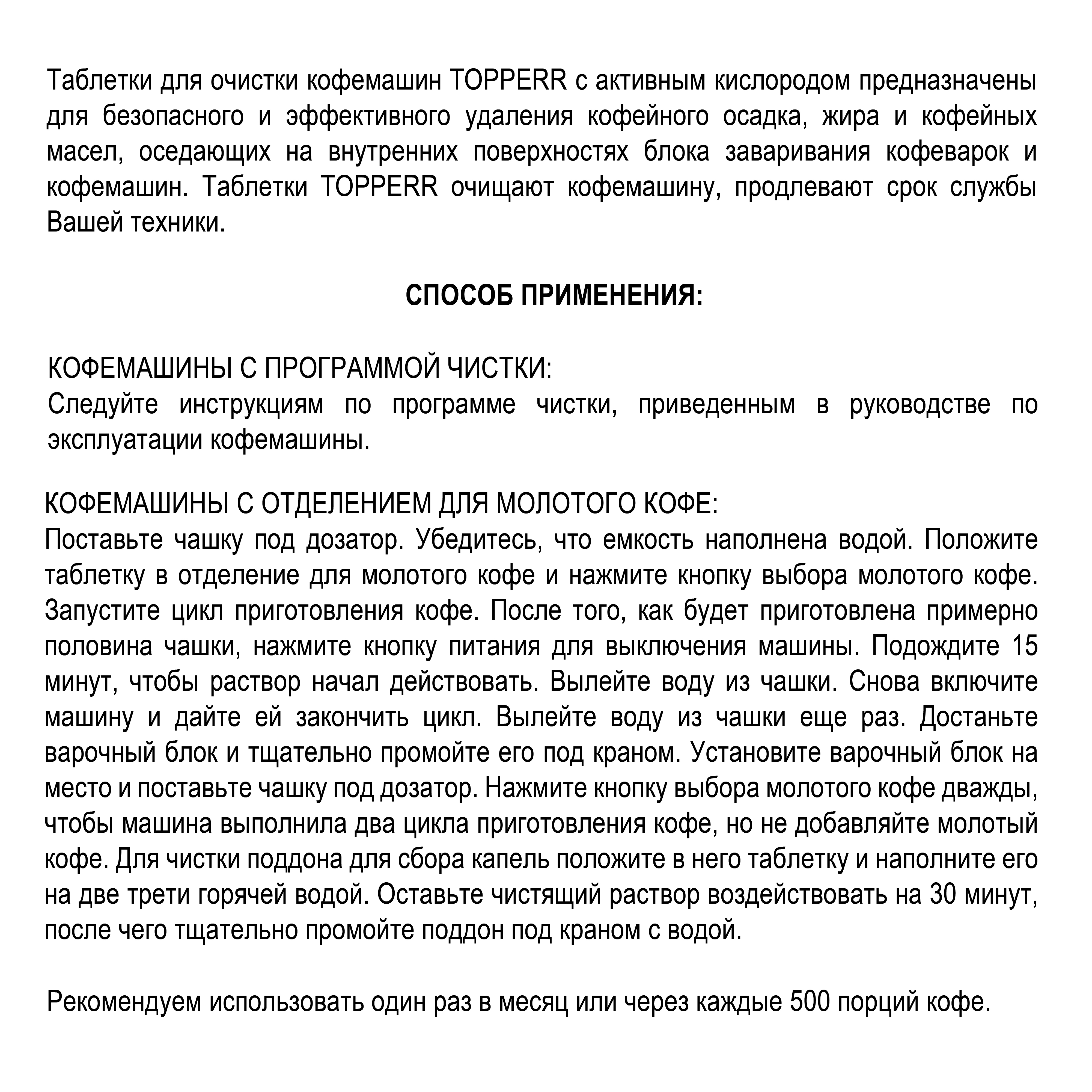 3037, Таблетки для очистки кофемашин от масел "Topperr", 10 шт. Уцененный товар