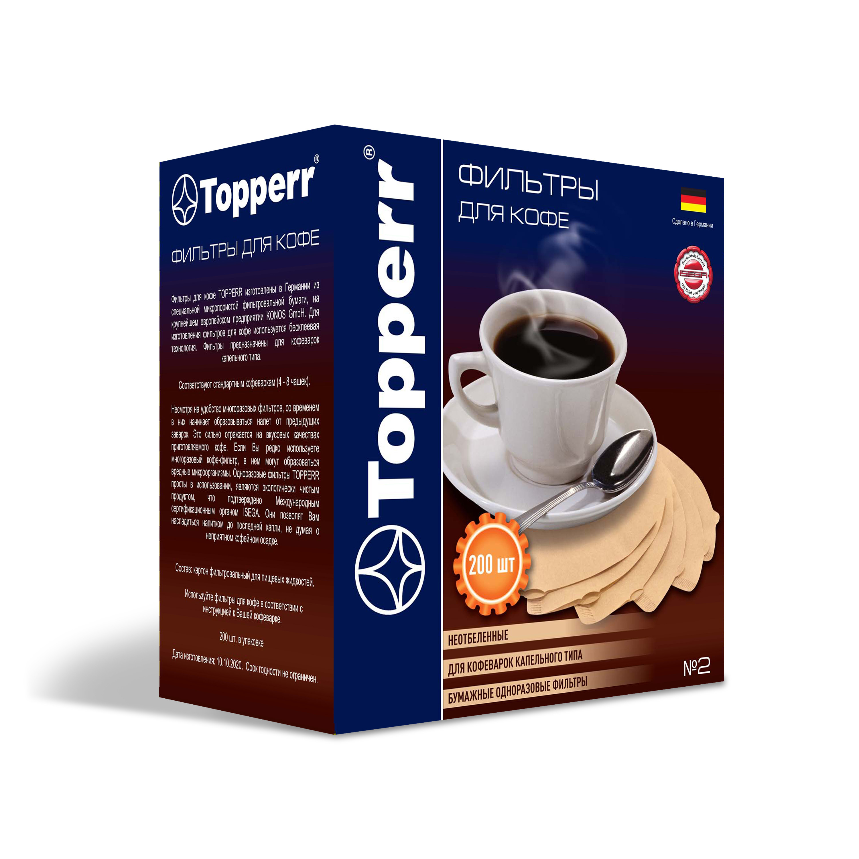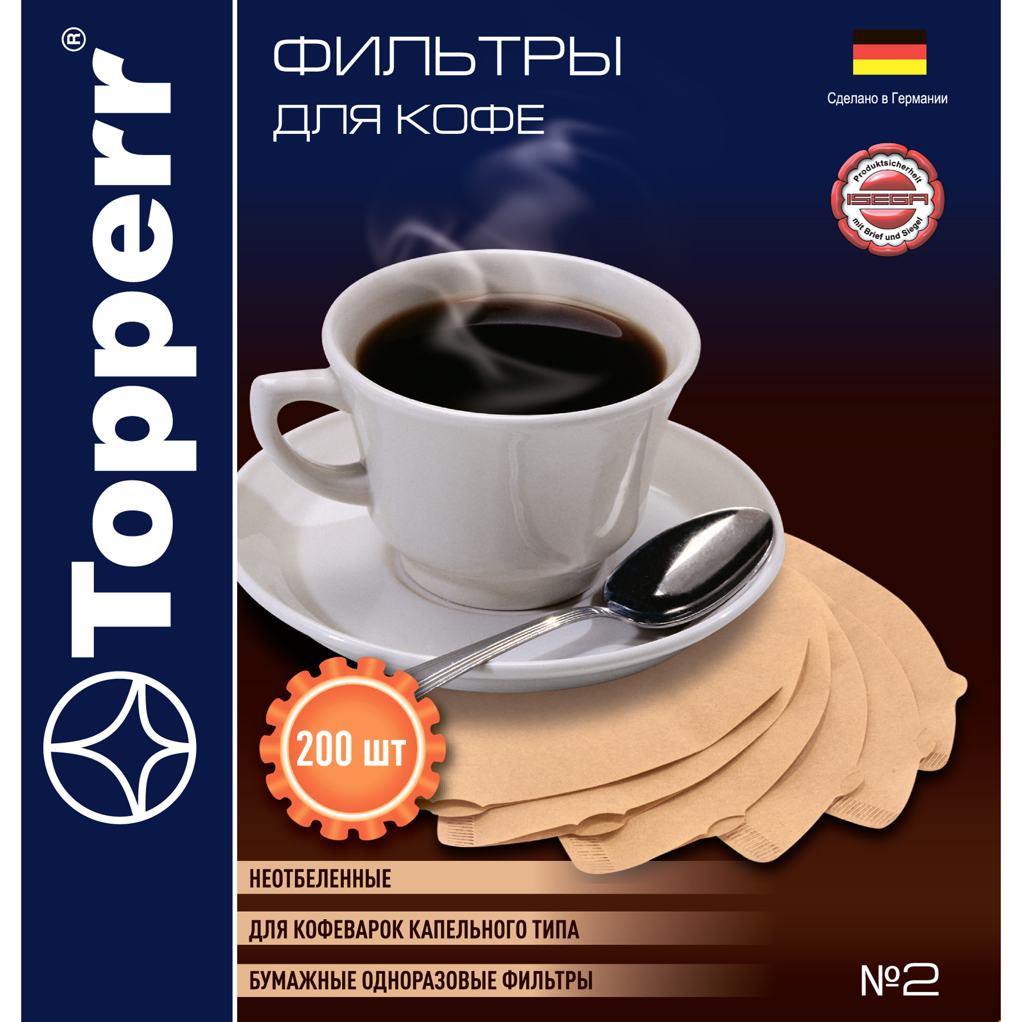 Фильтры для заваривания кофе неотбеленные Topperr №2, 200 шт