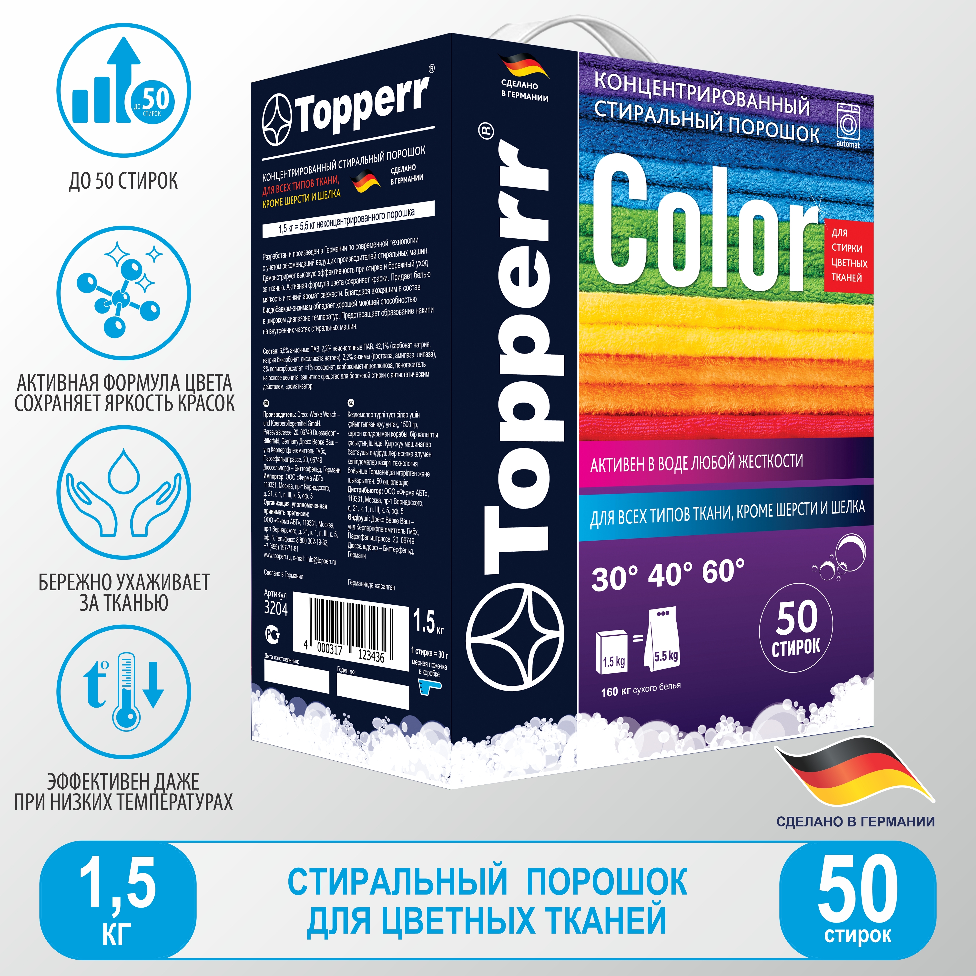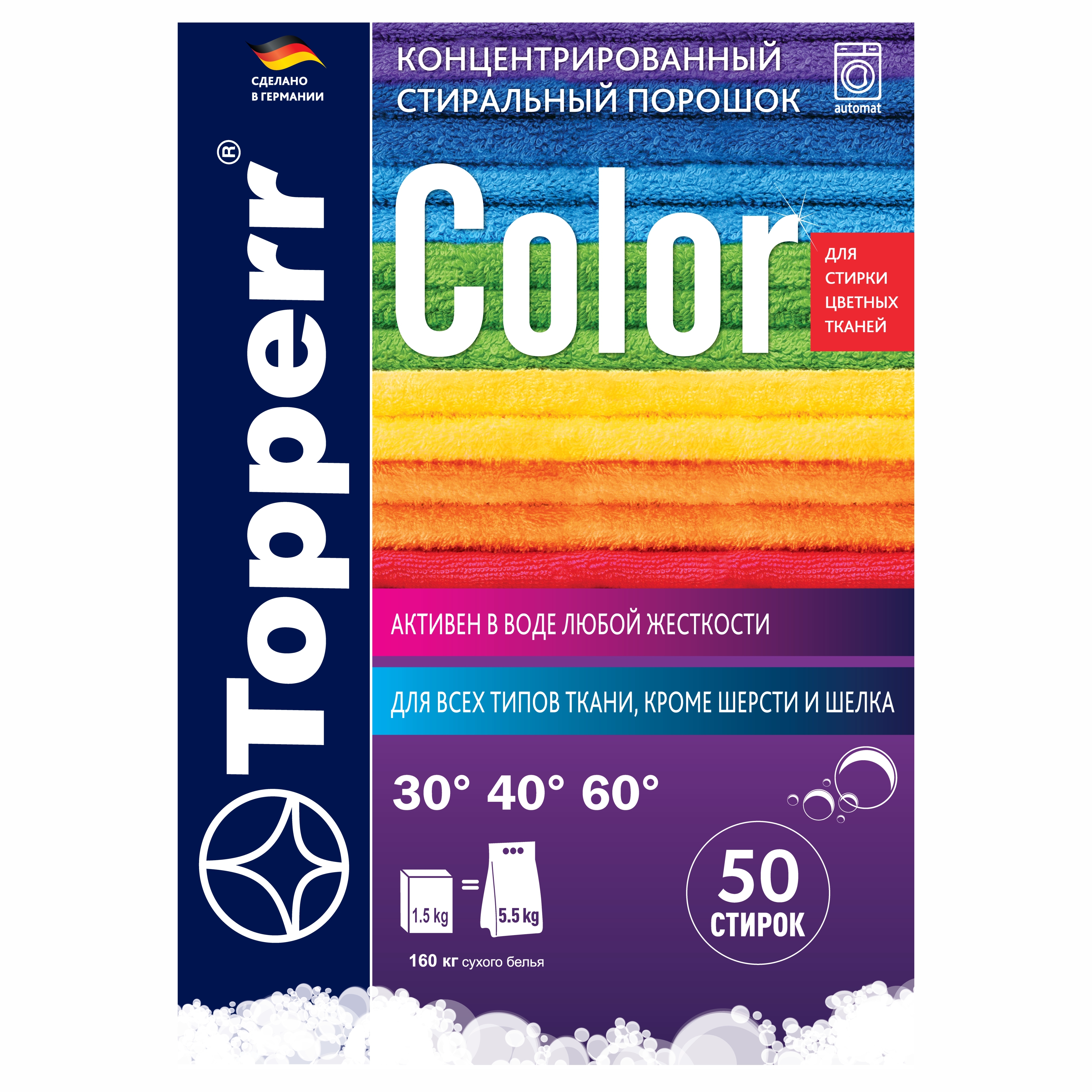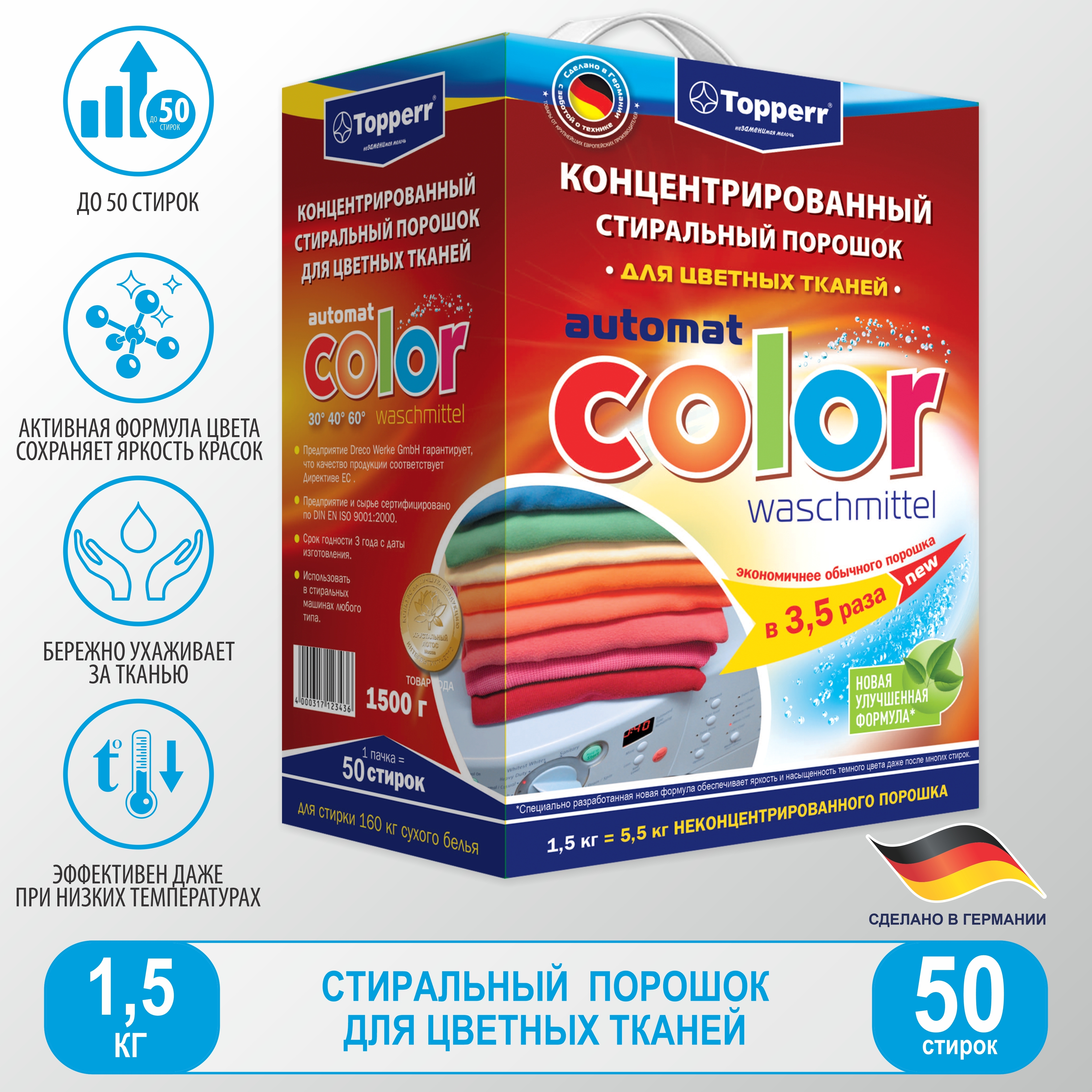 Стиральный порошок Topperr "Color", концентрат, для цветного белья, 1,5 кг