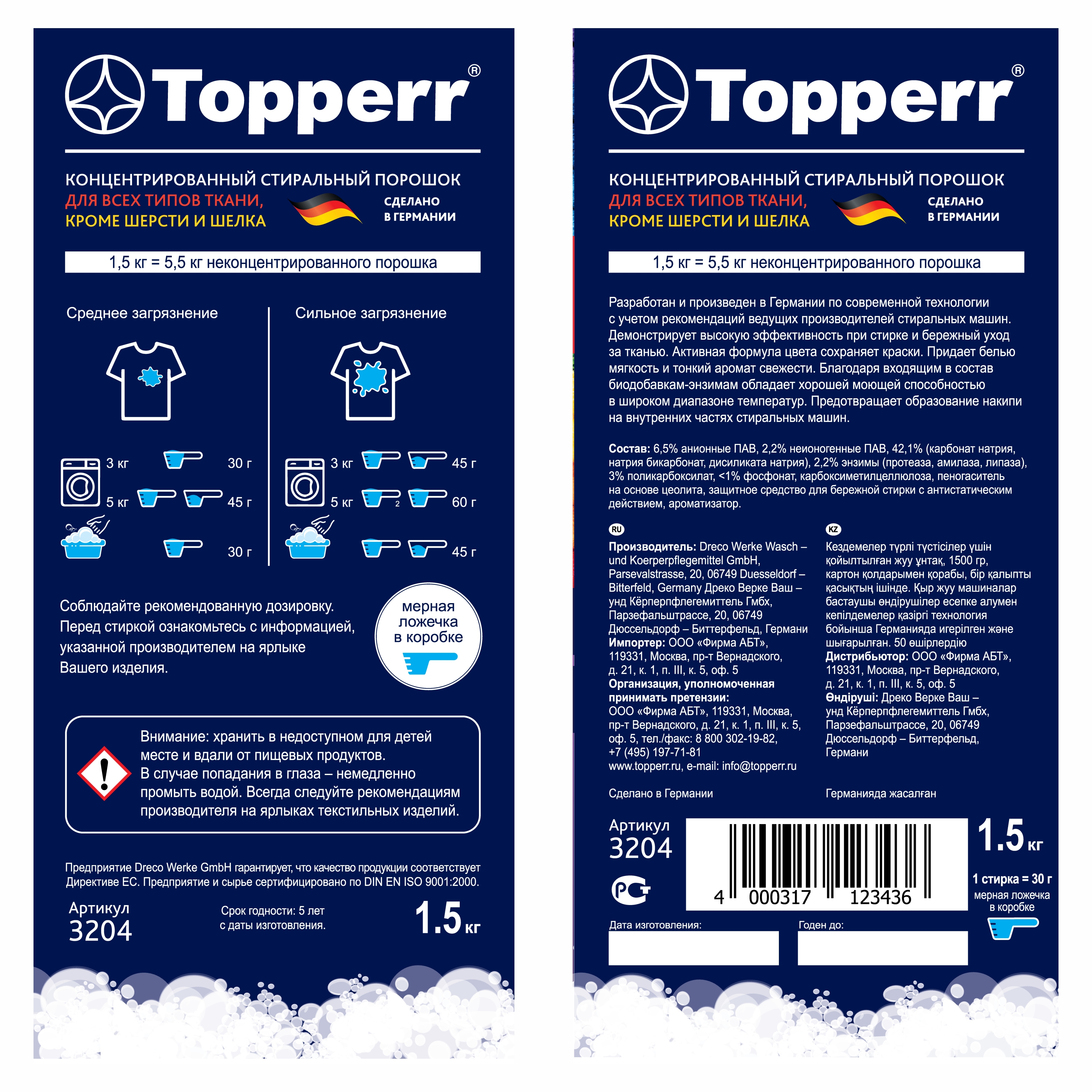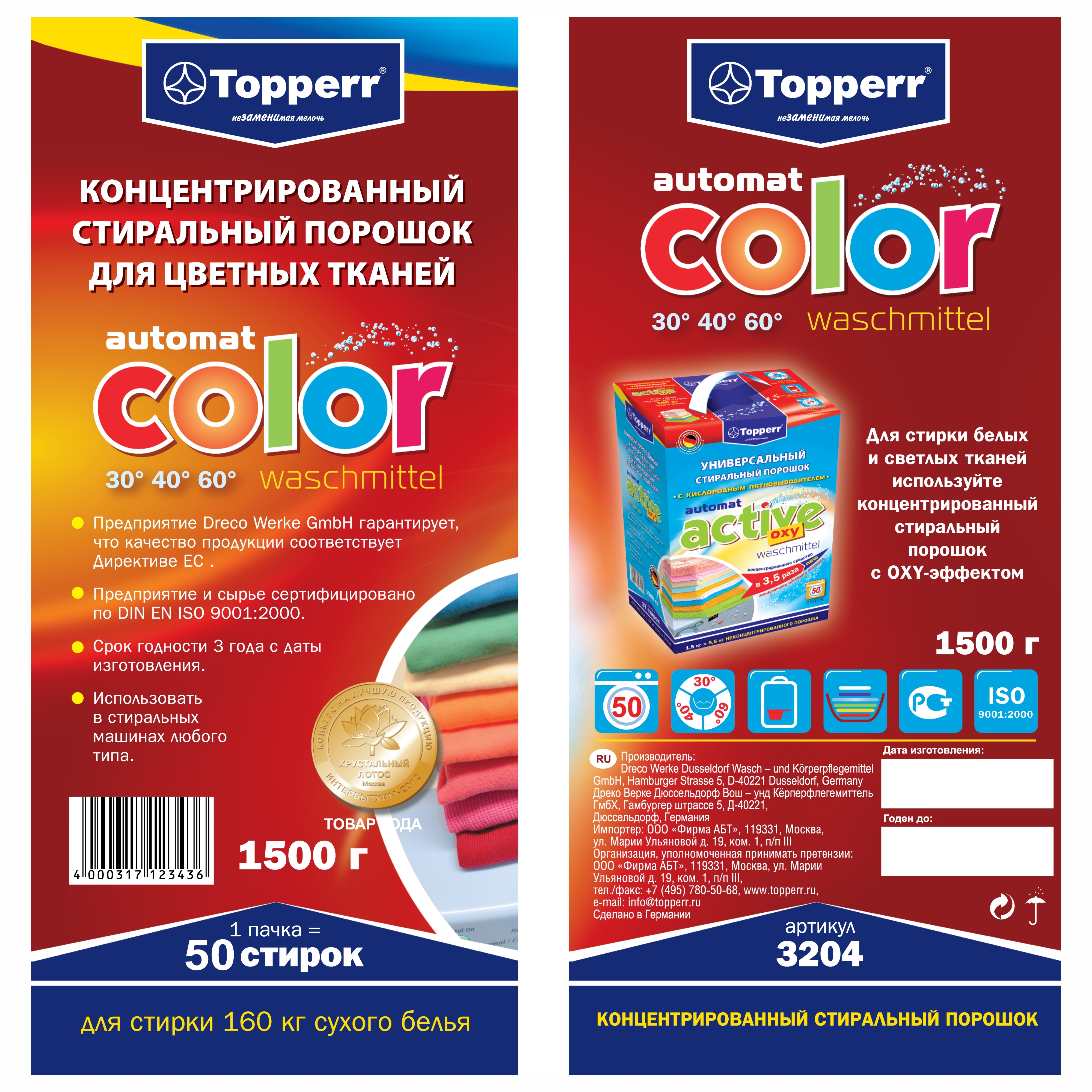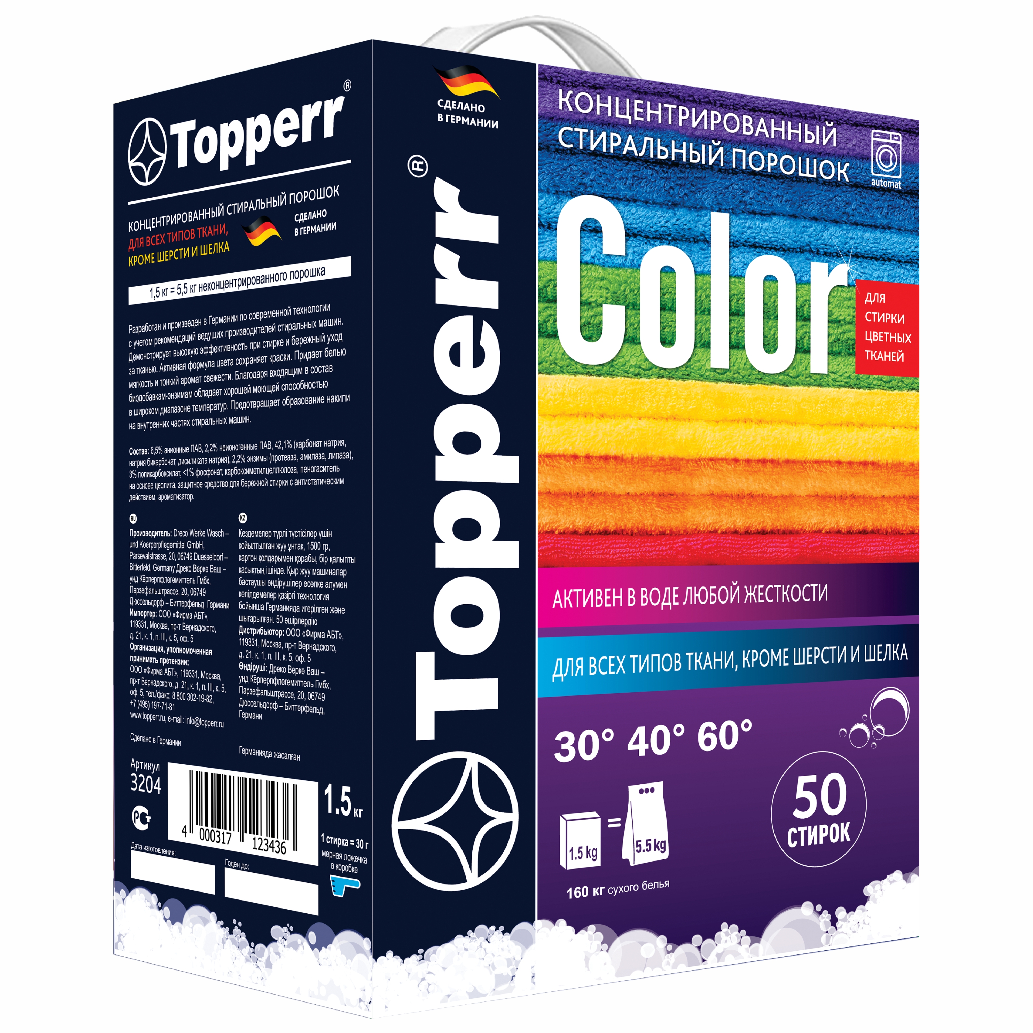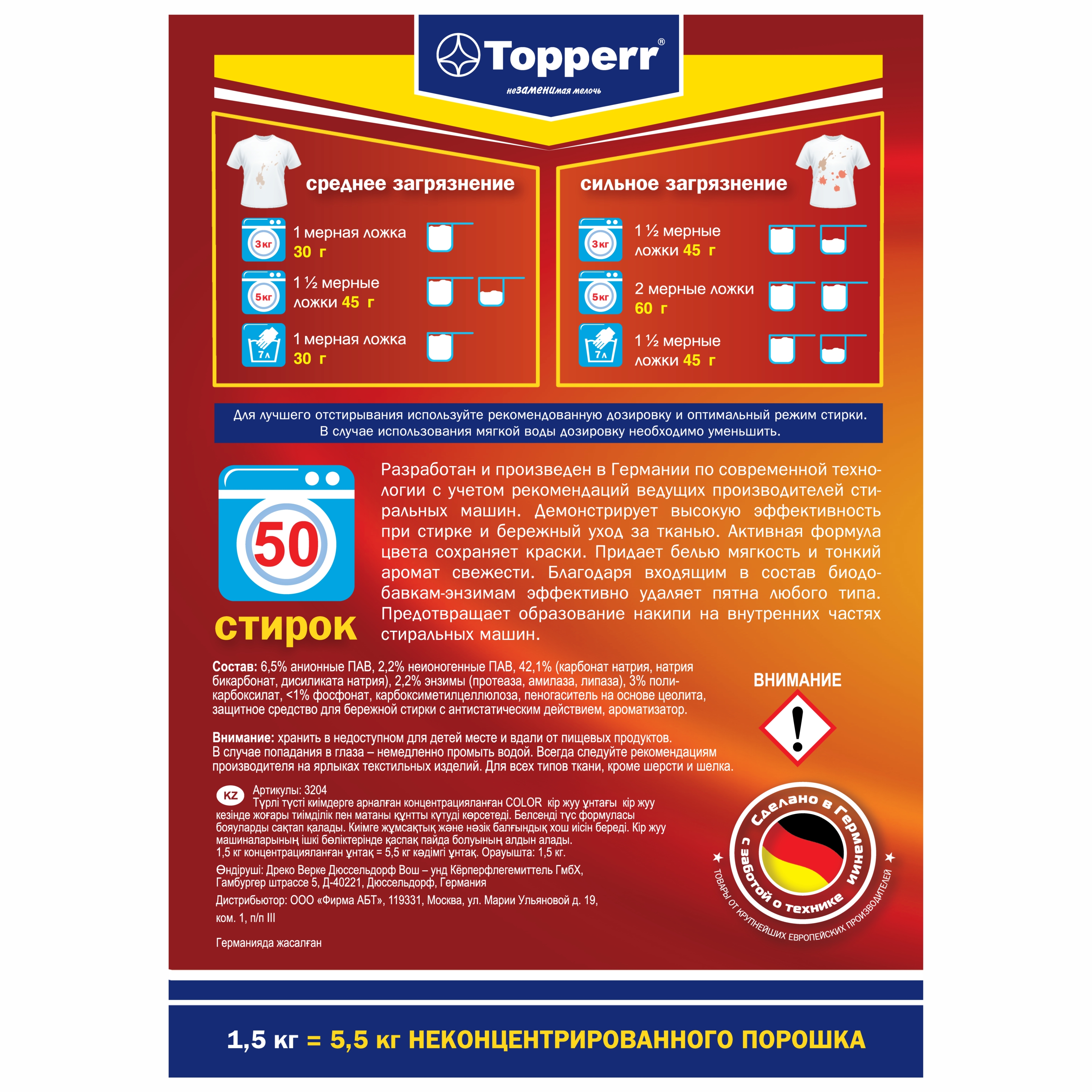Стиральный порошок Topperr "Color", концентрат, для цветного белья, 1,5 кг