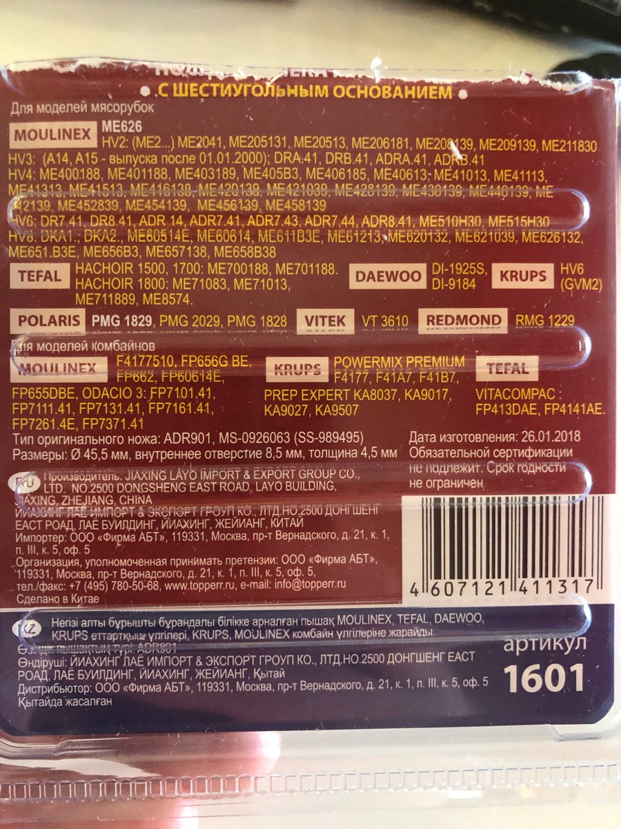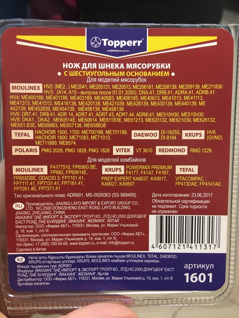 Нож для мясорубок Topperr 1601 для Moulinex/Tefal/Daewoo/Krups