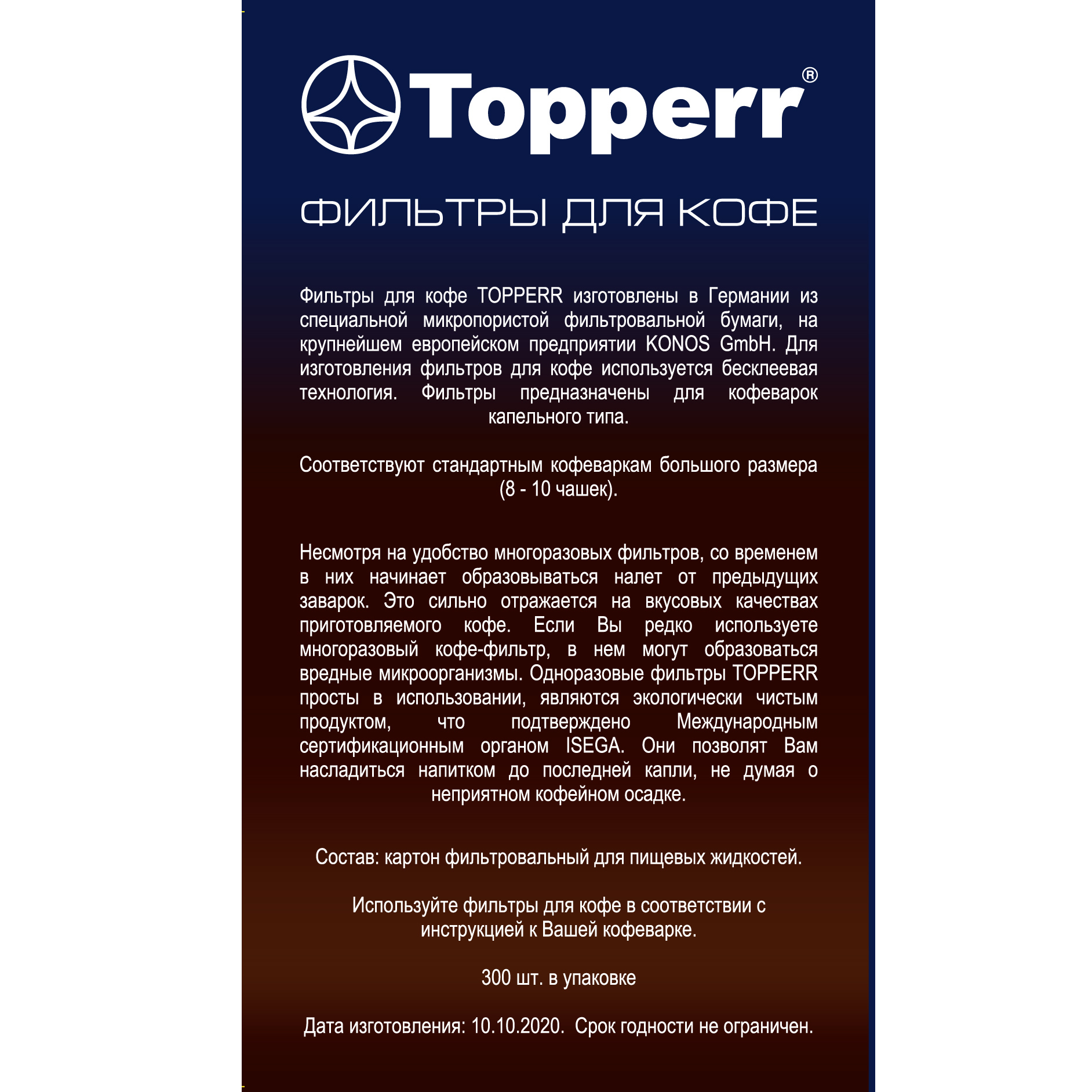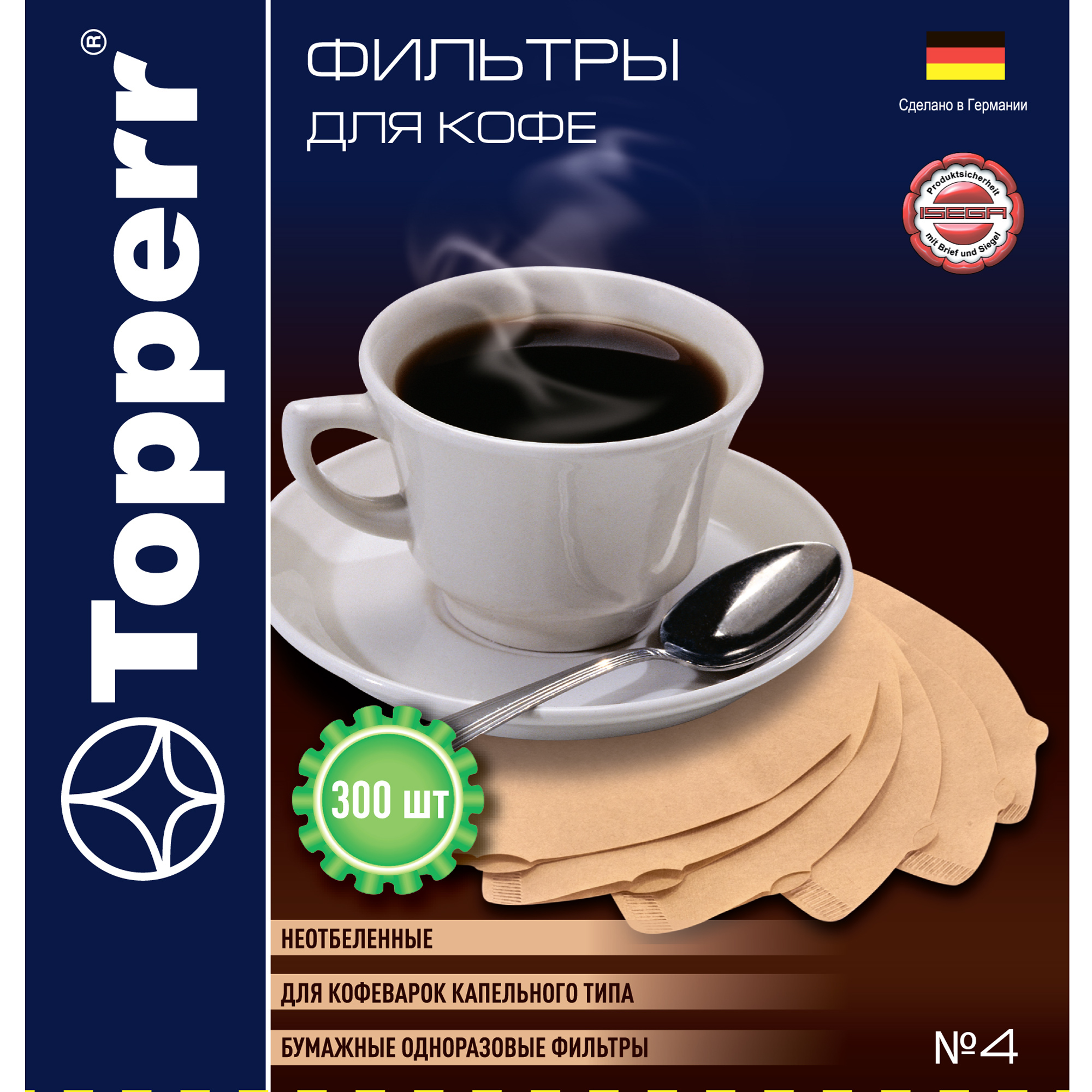 Фильтры для заваривания кофе неотбеленные Topperr №4, 300 шт