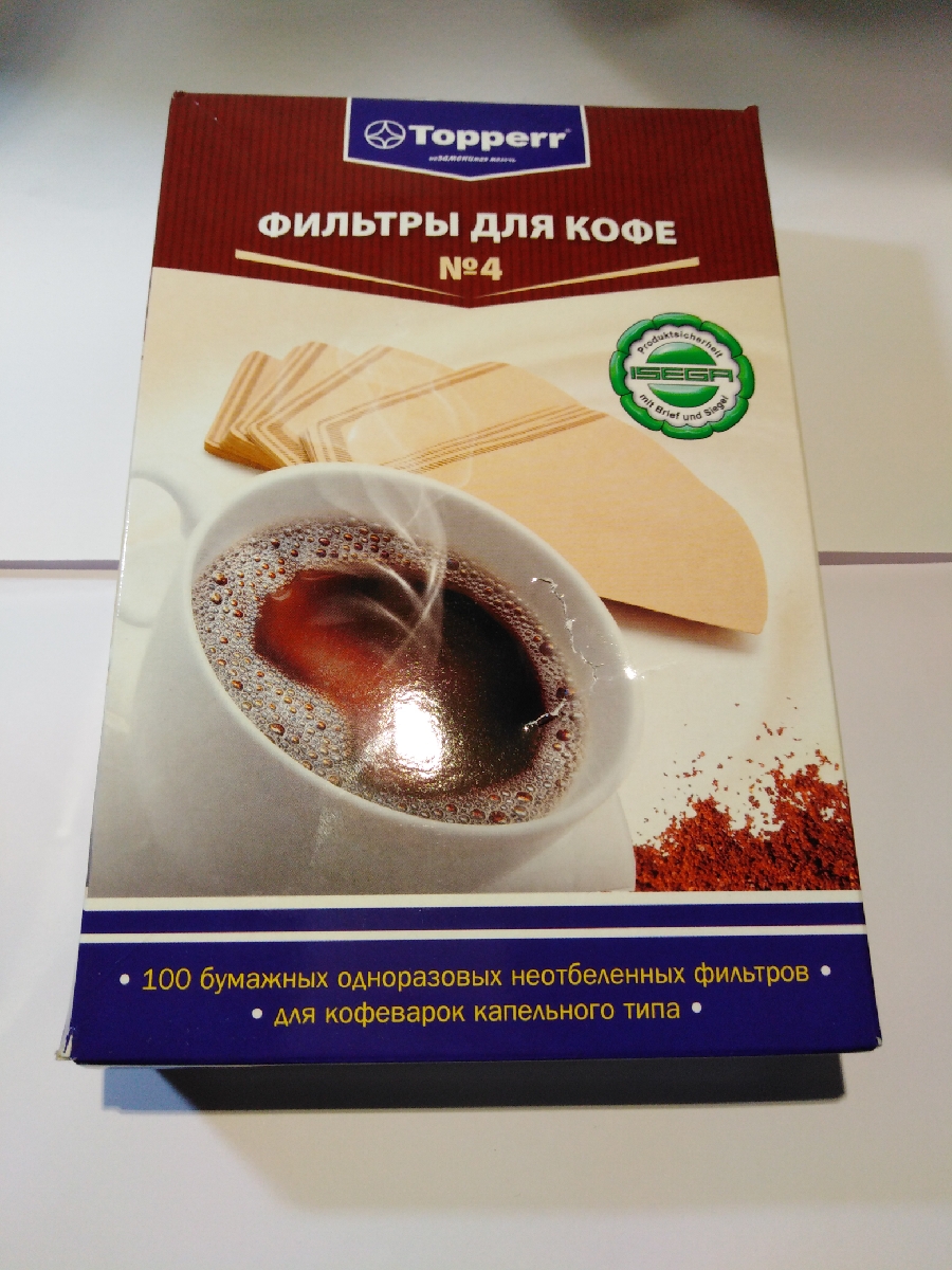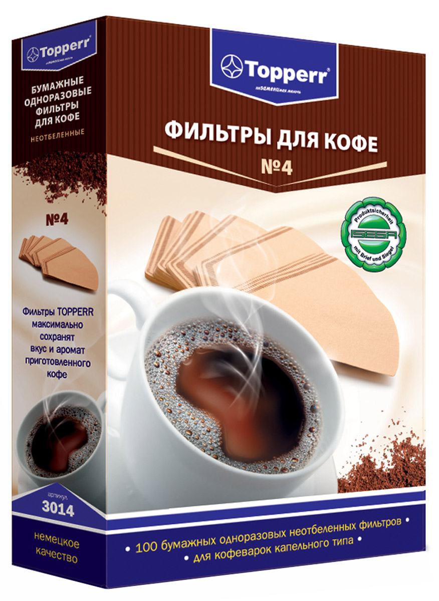 Фильтры для заваривания кофе неотбеленные Topperr №4, 100 шт