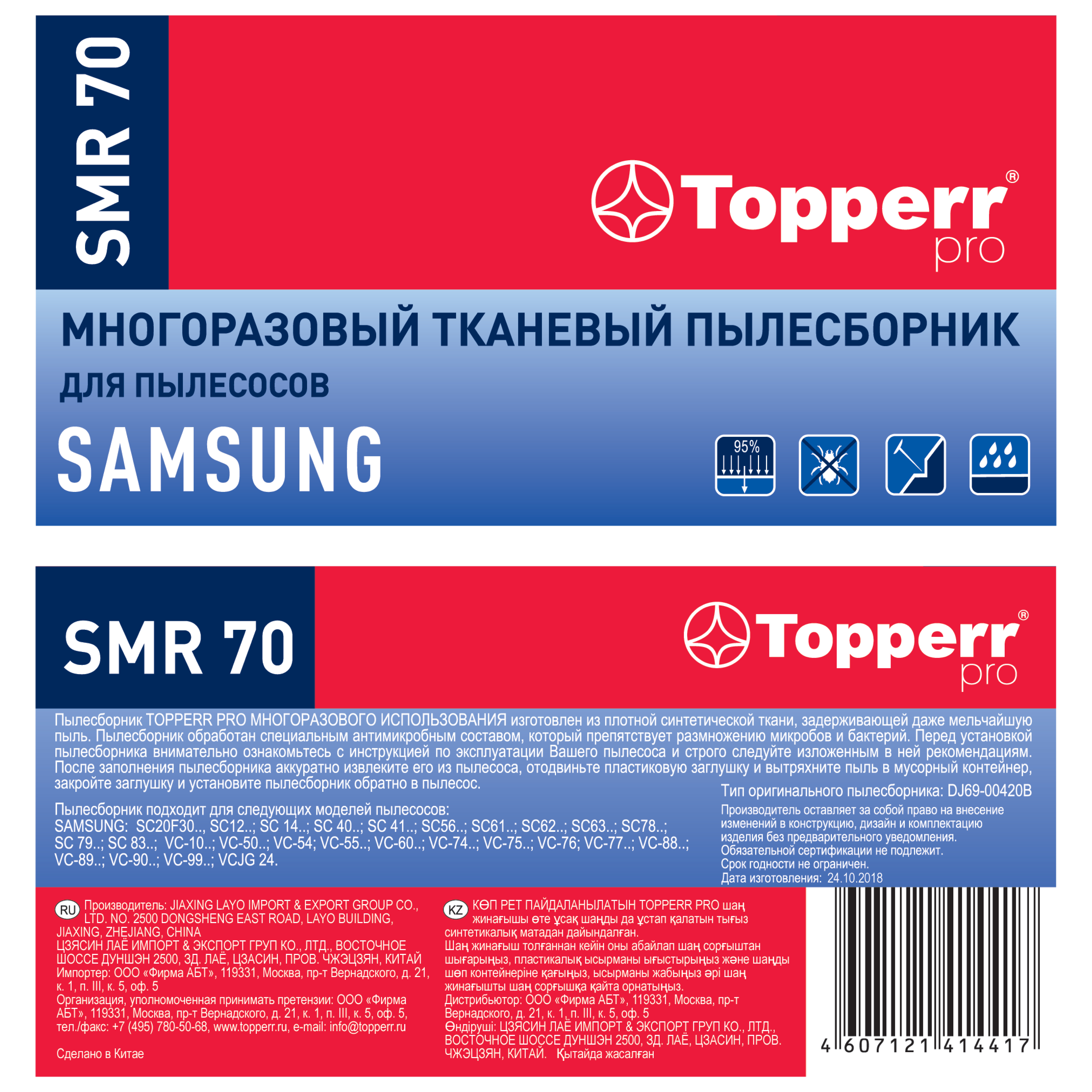 Topperr SMR70 пылесборник многоразовый для пылесоса Samsung, 1 шт