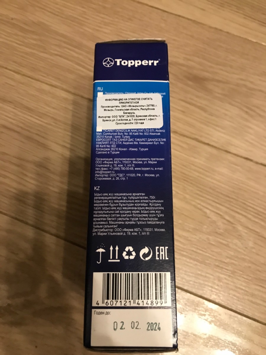Соль для посудомоечных машин "Topperr", гранулированная, 750 г