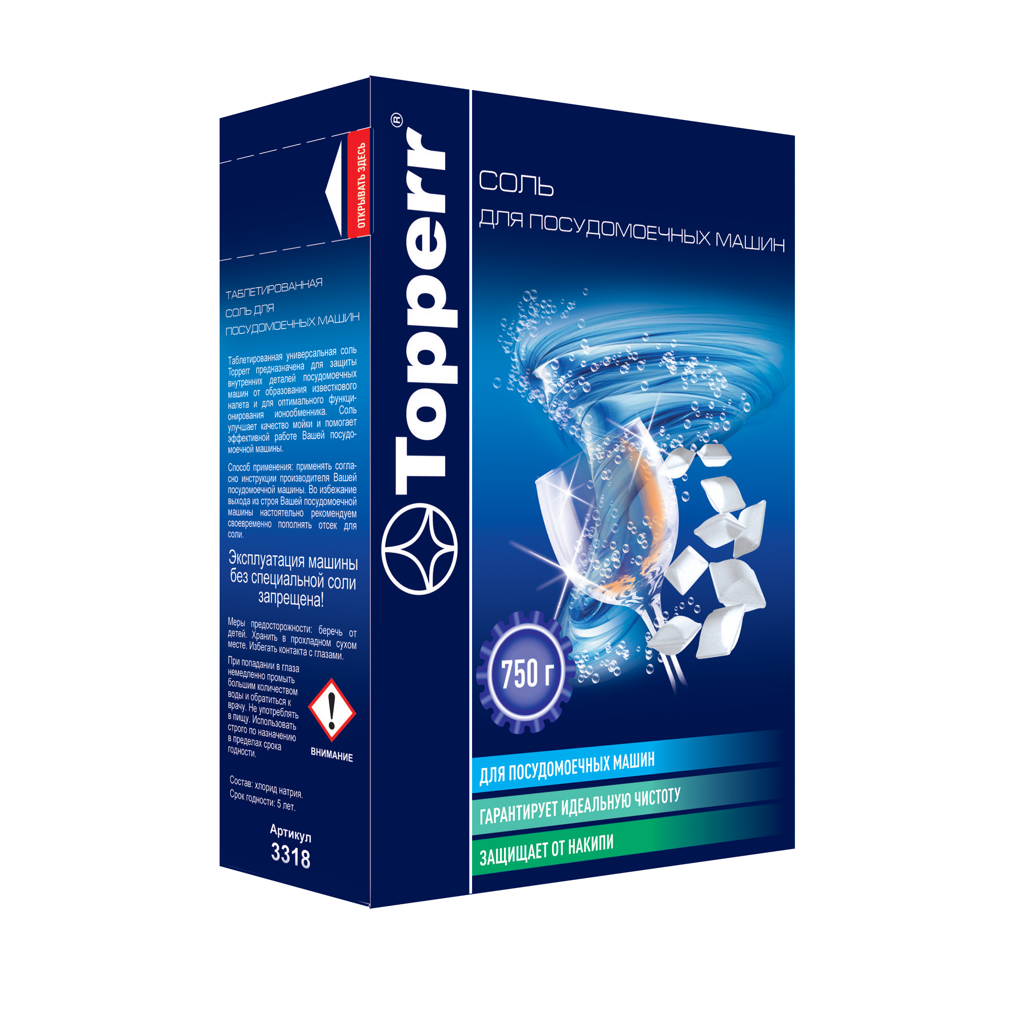 3318 Topperr Соль для посудомоечных машин, таблетированная, 750 г (T)