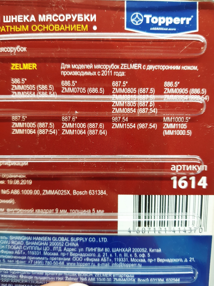 Topperr 1614 нож для мясорубок Zelmer/Bosch