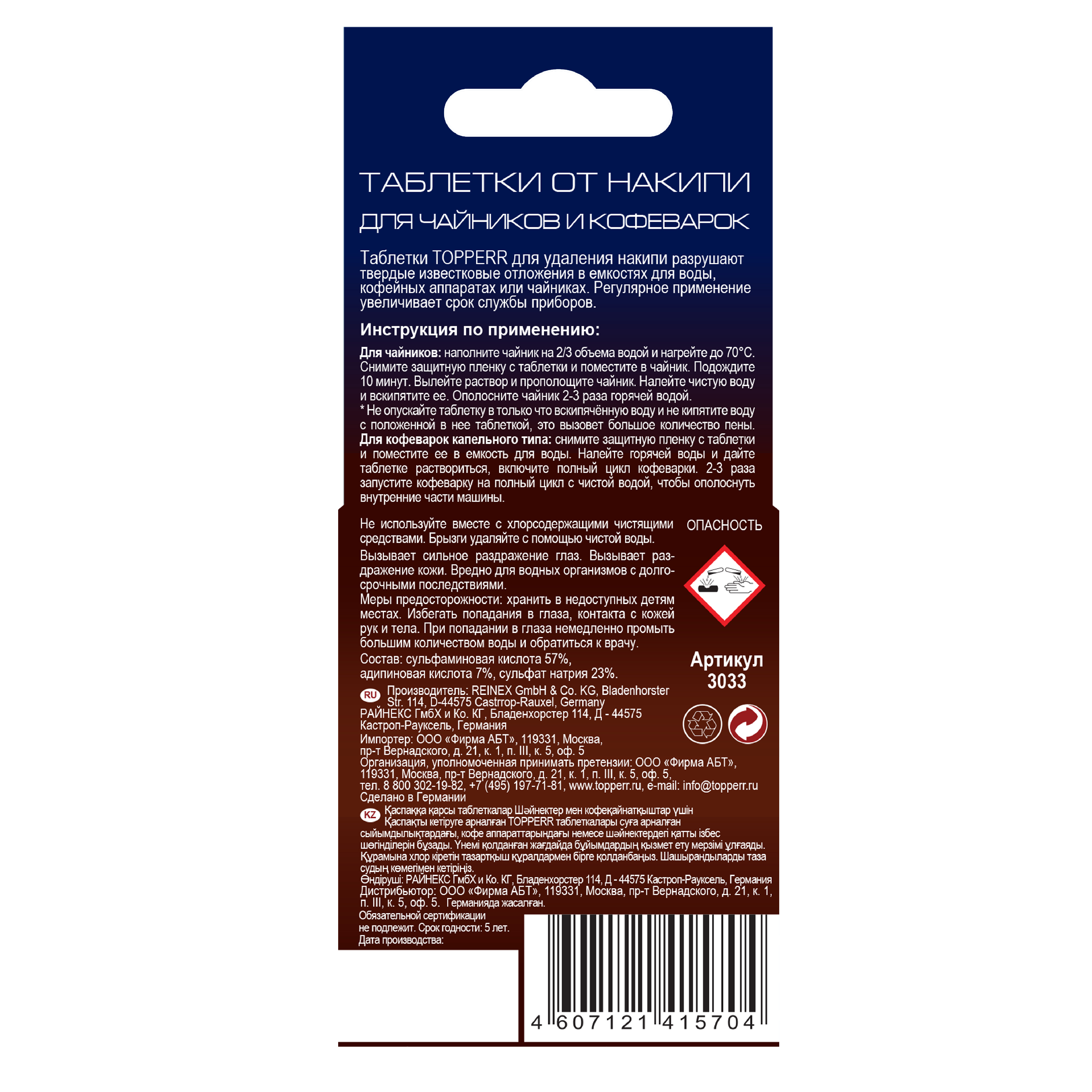 (3033), Таблетки от накипи "Topperr" для чайников и кофеварок, 2 шт х 16 г