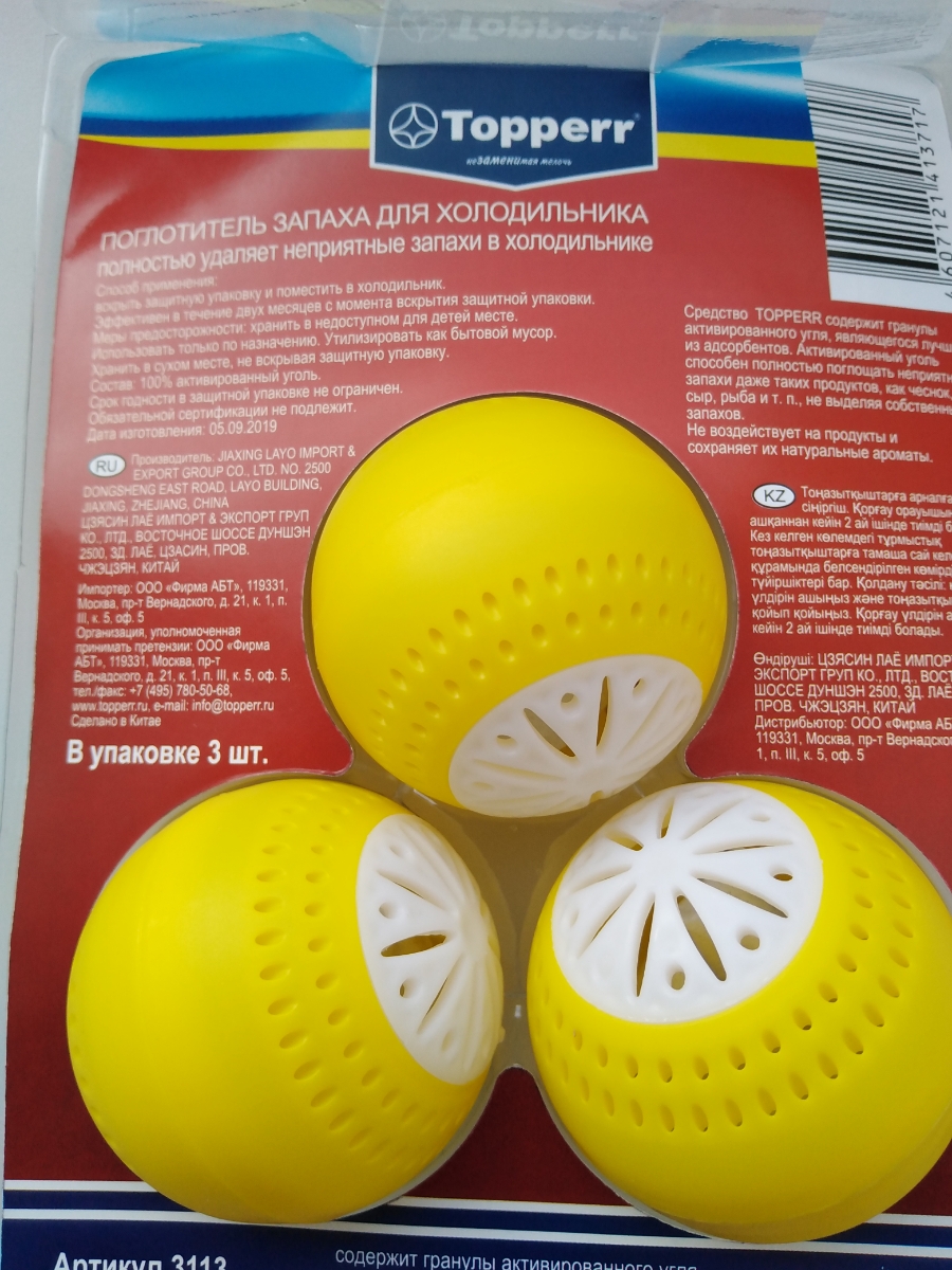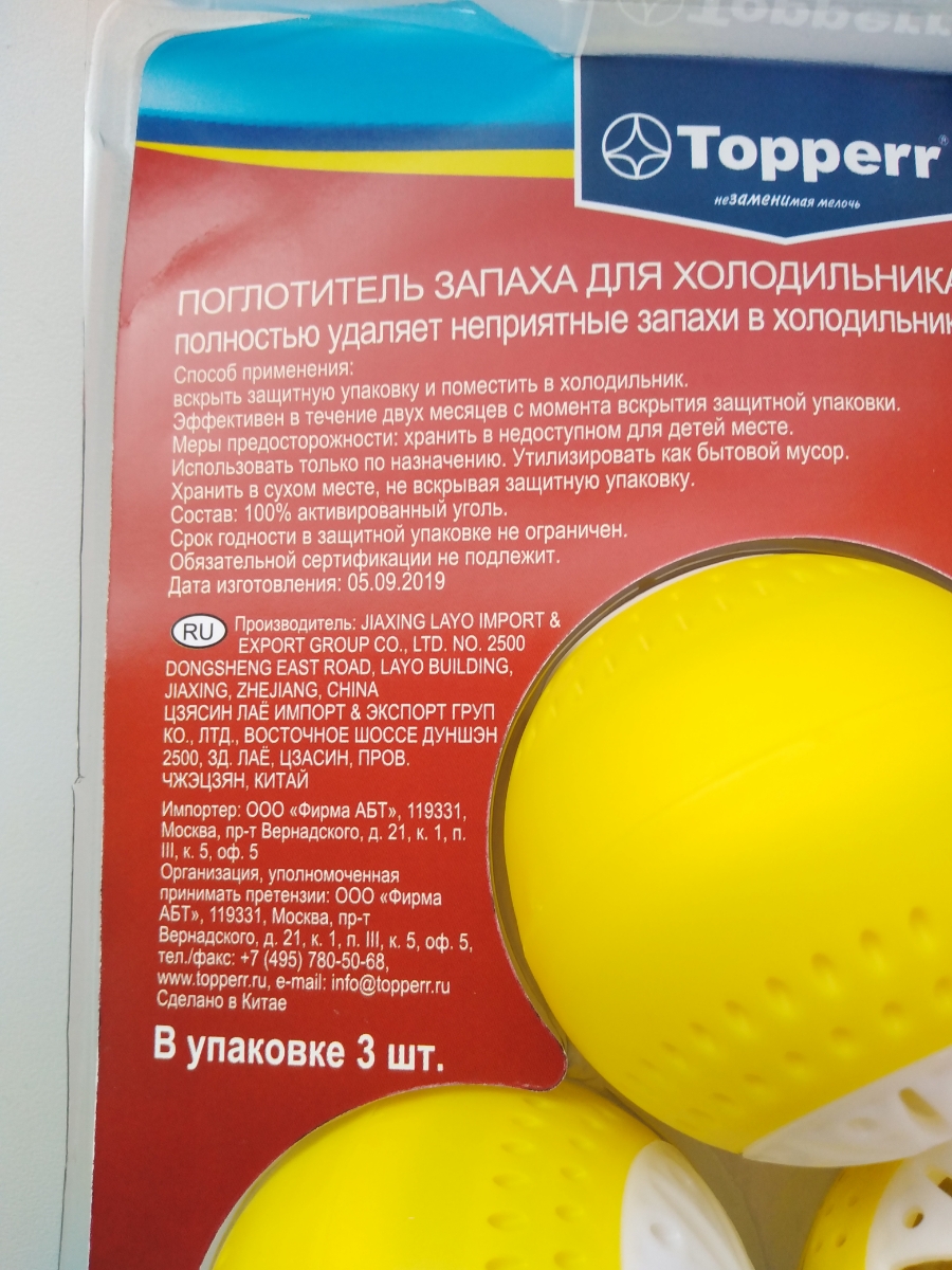 Поглотитель запаха для холодильника Topperr "Шар", 3 шт