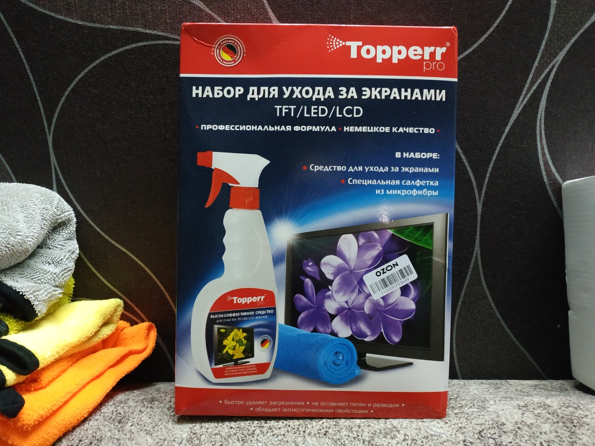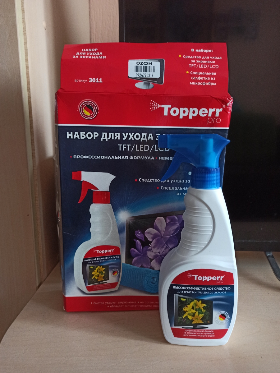 3011 Topperr Набор для ухода за экранами ЖК, LCD и плазмы 2 предмета (ср-во+салфетка)