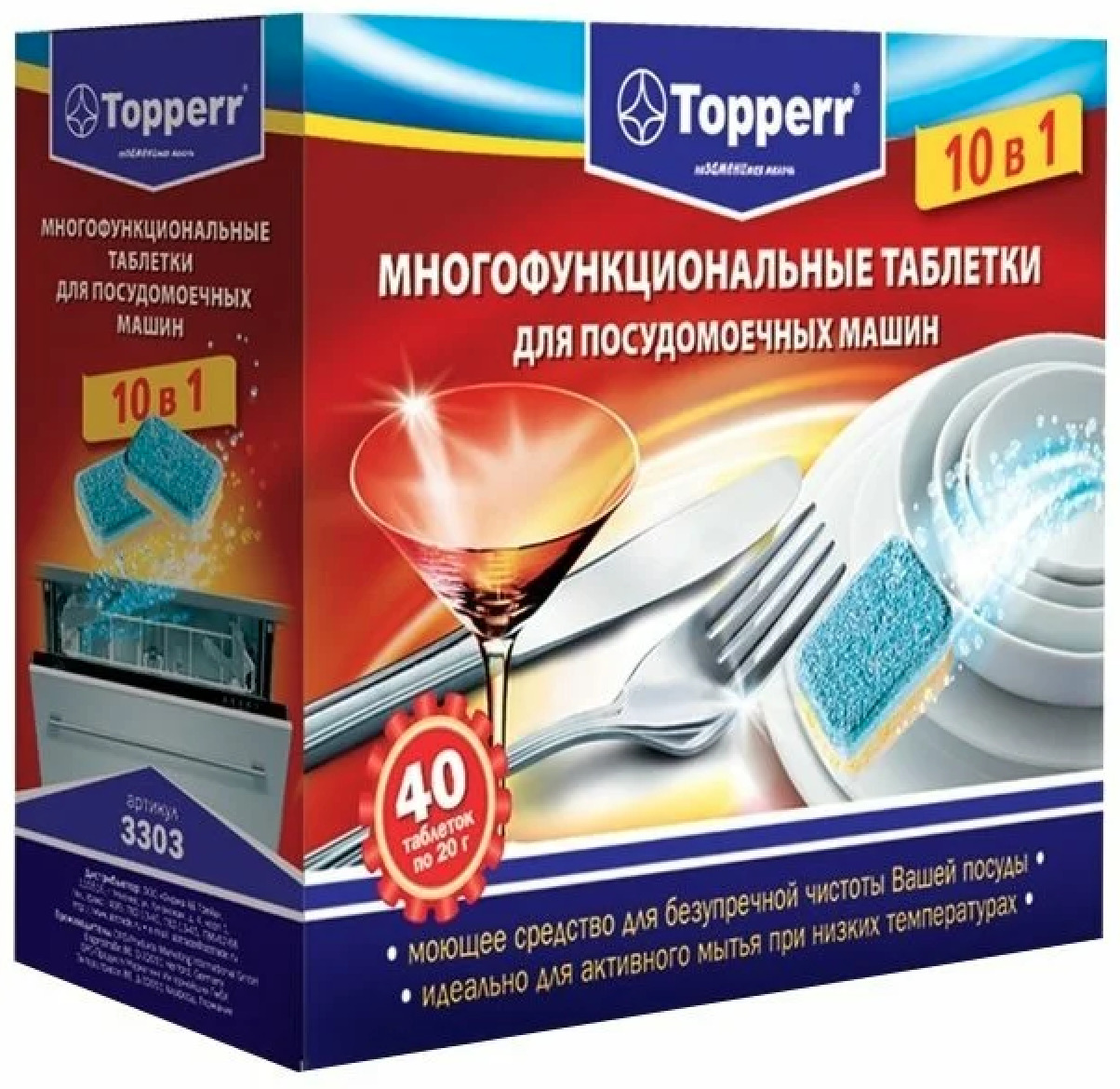 3303 Topperr Таблетки для посудомоечных машин, 10 в 1, 40 шт. в упаковке