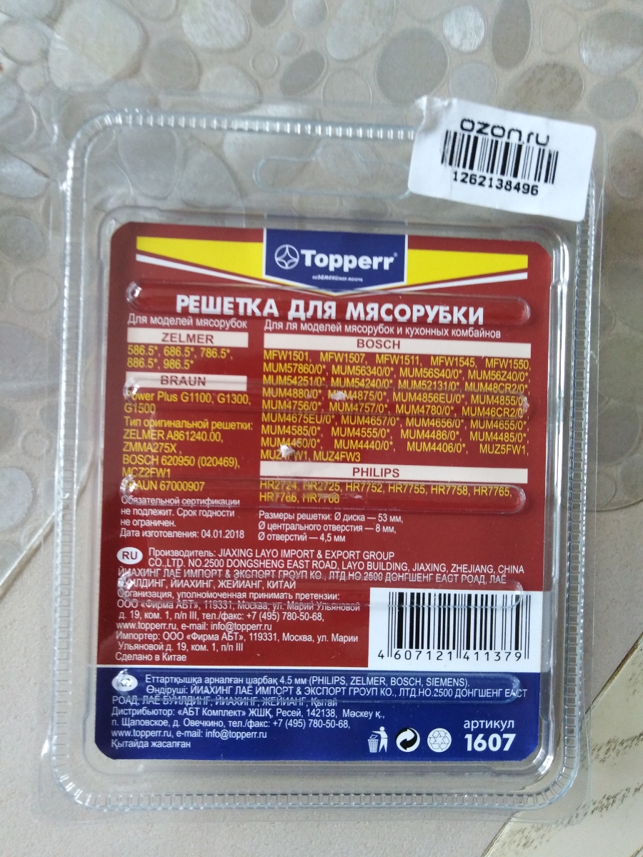 Topperr 1607 решетка для мясорубок Zelmer/Bosch/Braun/Philips