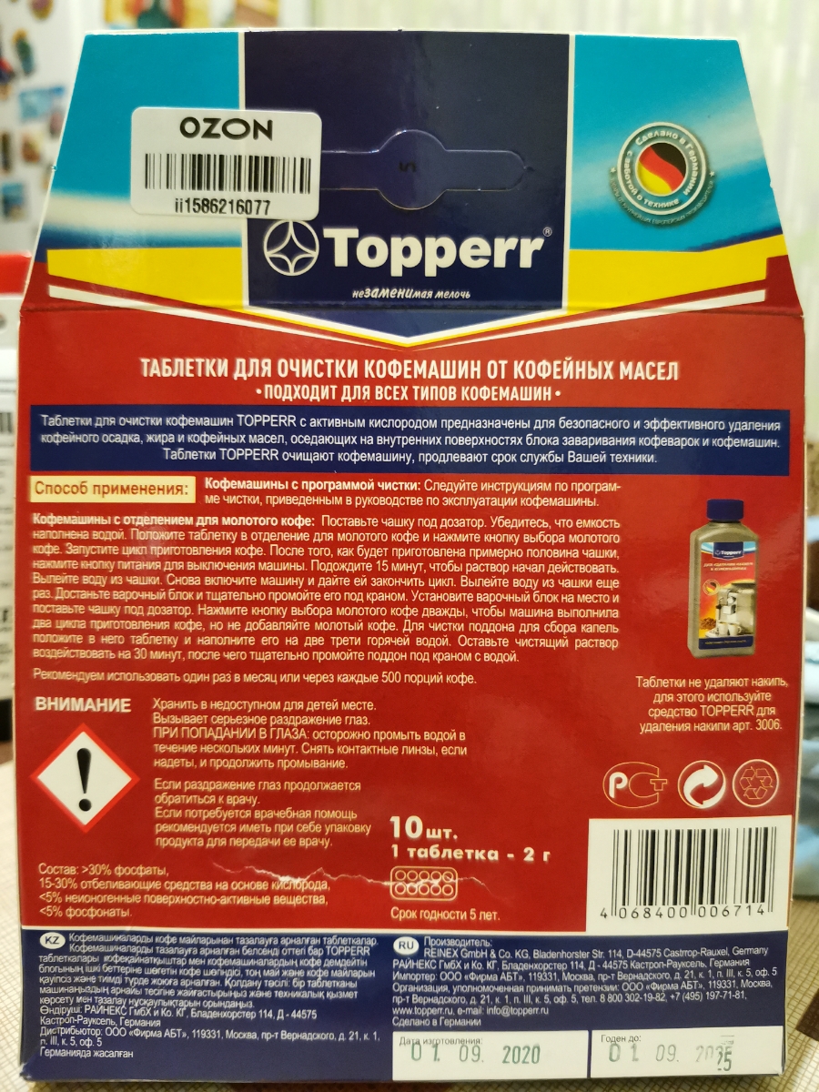 Таблетки для очистки кофемашин от масел "Topperr", 10 шт