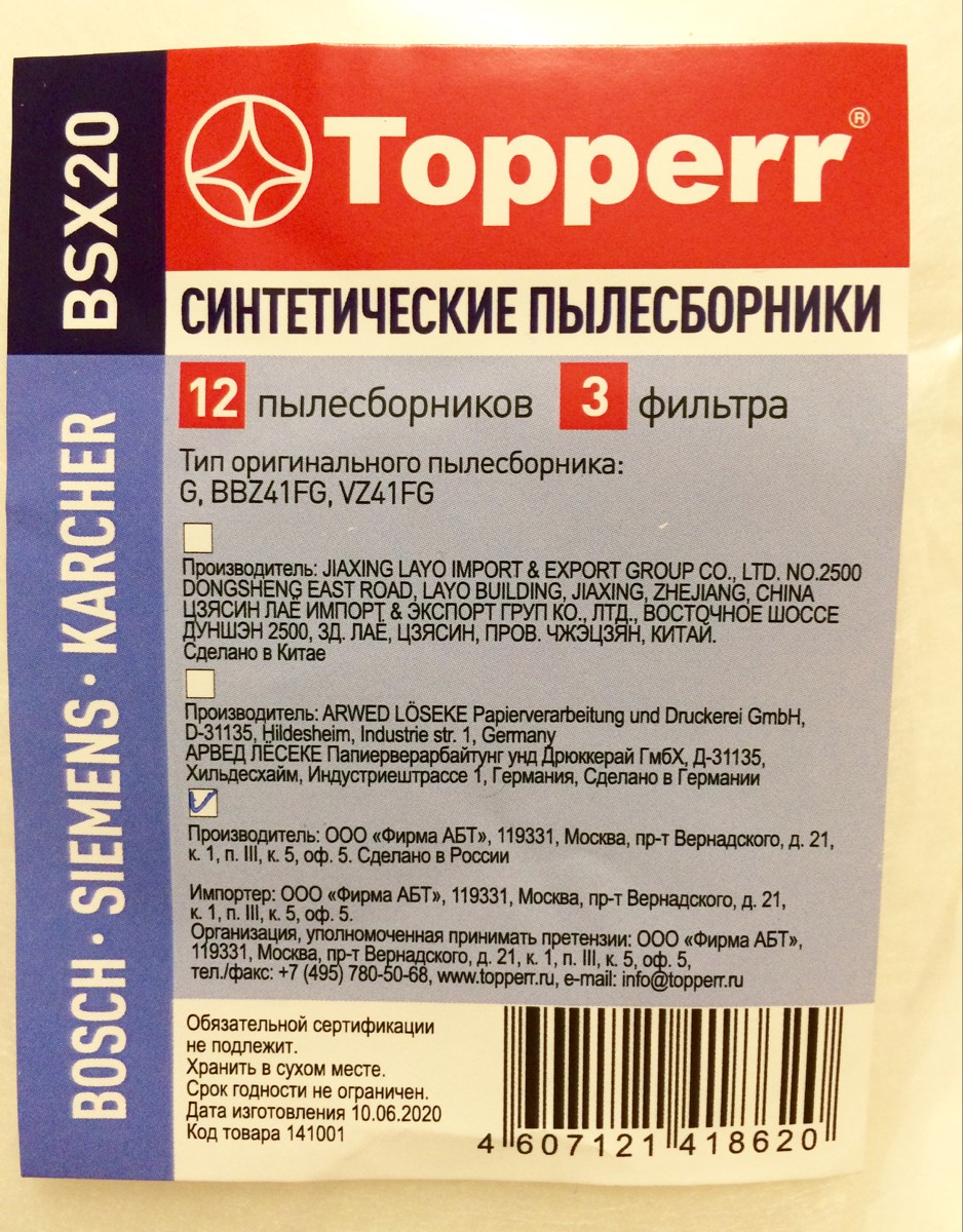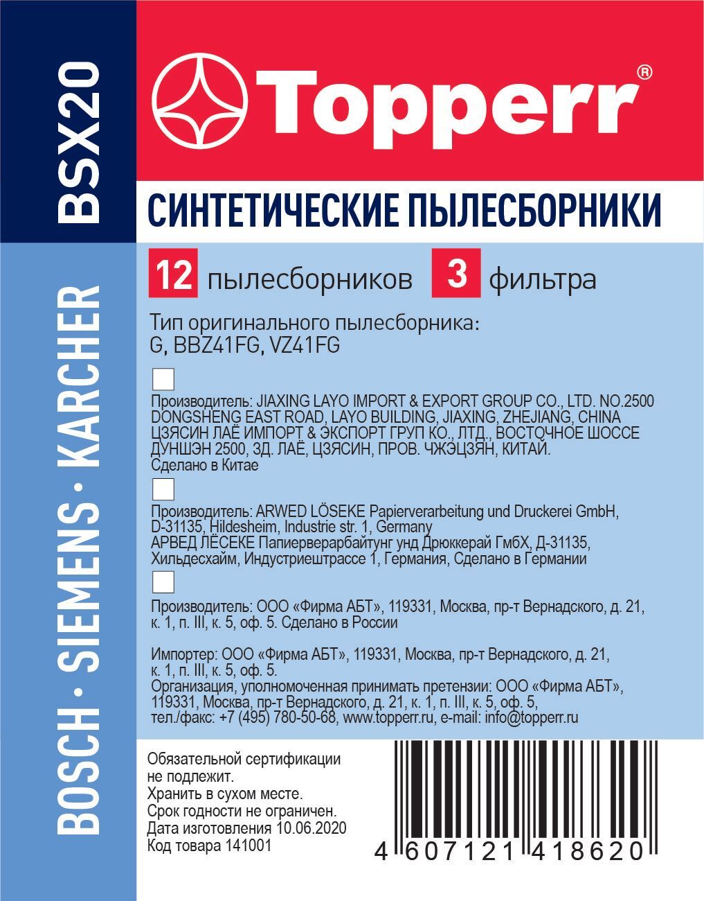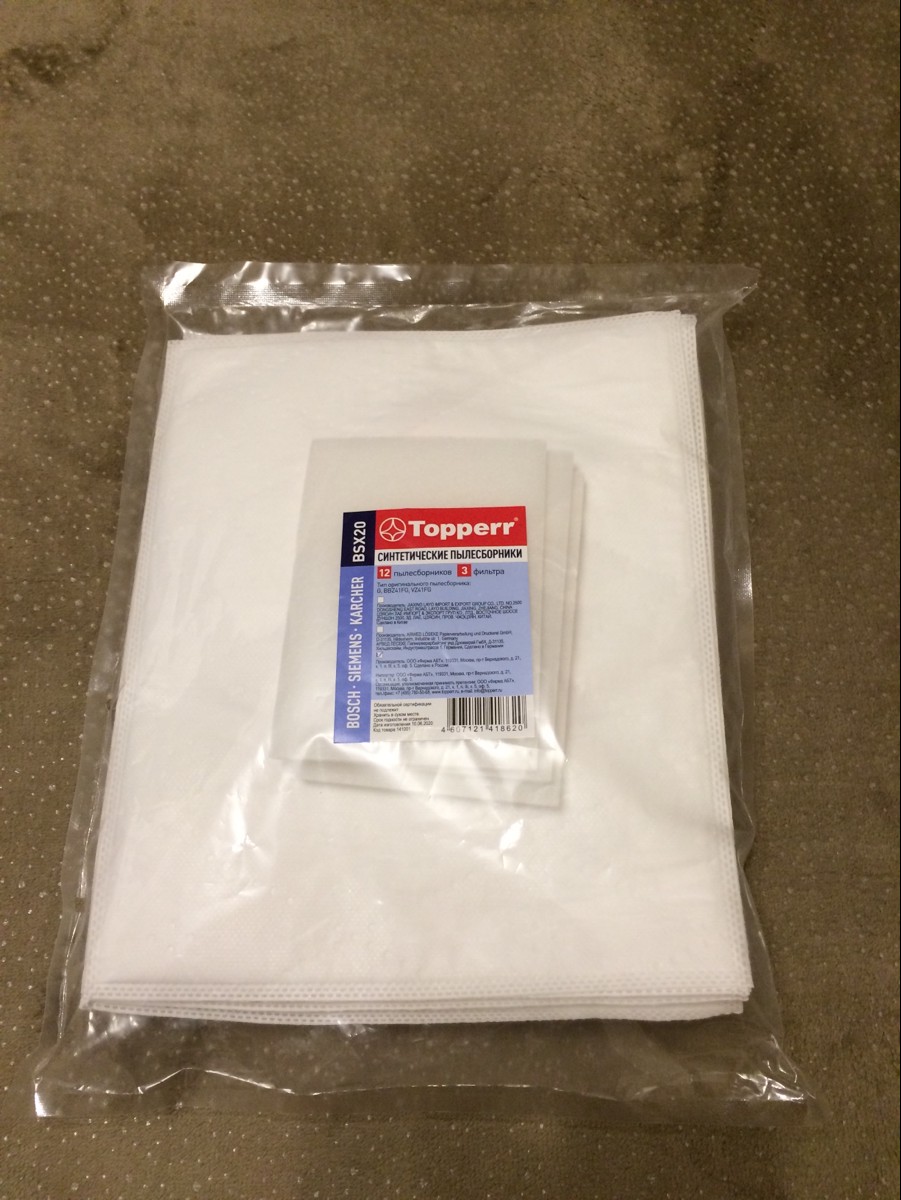 Комплект пылесборник и фильтр Topperr BS 20 для пылесосов Bosch/ Siemens 12+3 шт