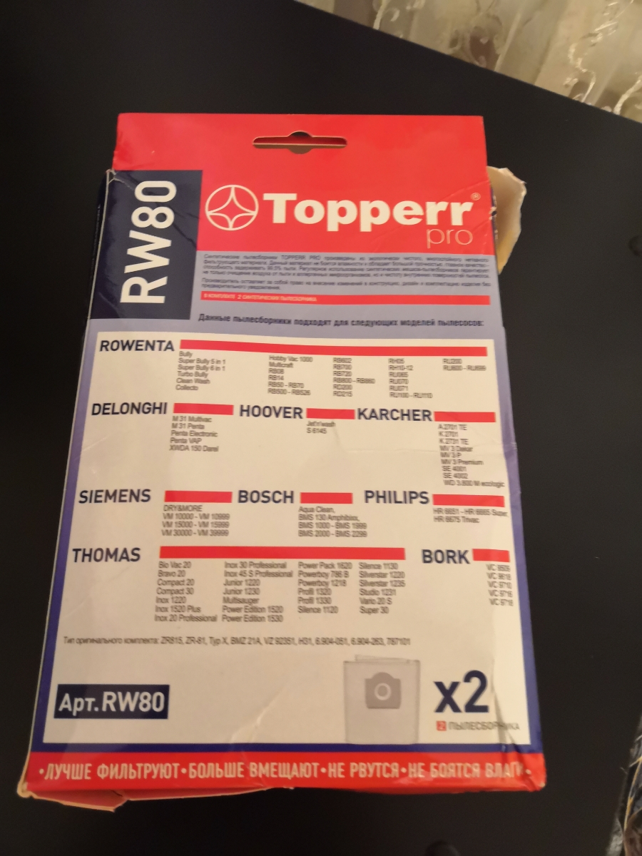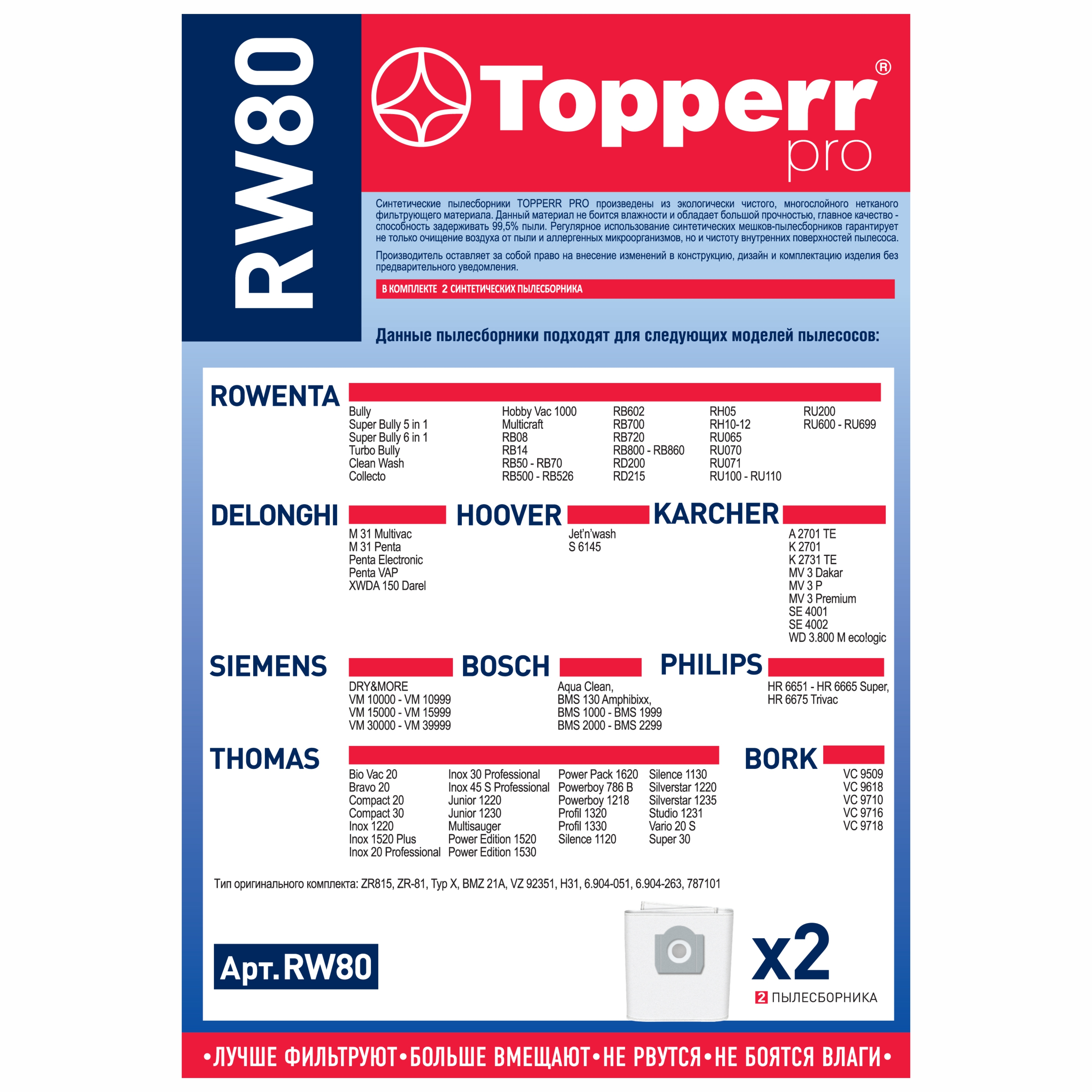 Topperr комплект пылесборников для пылесосов Rowenta, Karcher, 2 шт, 1425 RW 80
