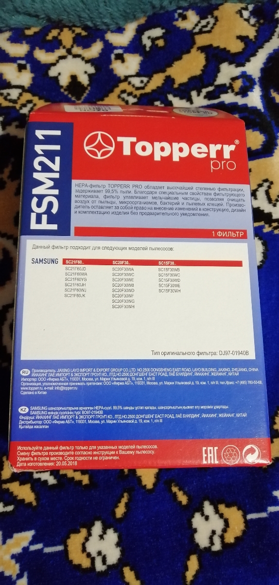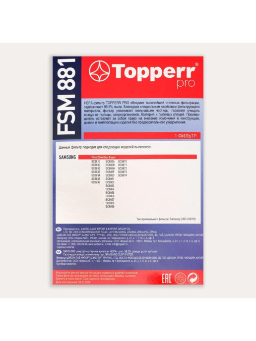 HEPA фильтр Topperr FSM 211 для пылесосов Samsung (аналог DJ97-01940B)