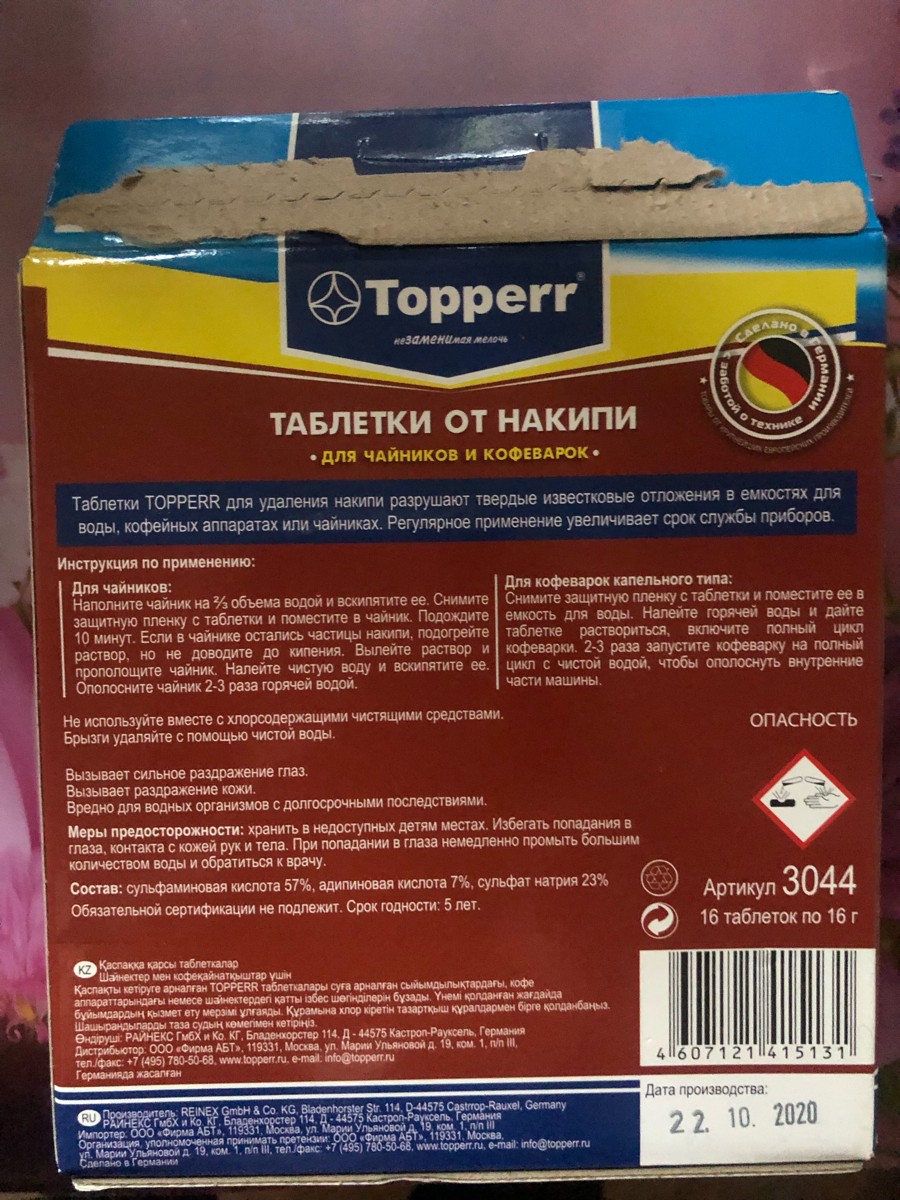 3044 Topperr Таблетки от накипи для чайников и кофеварок, компл.16 шт.