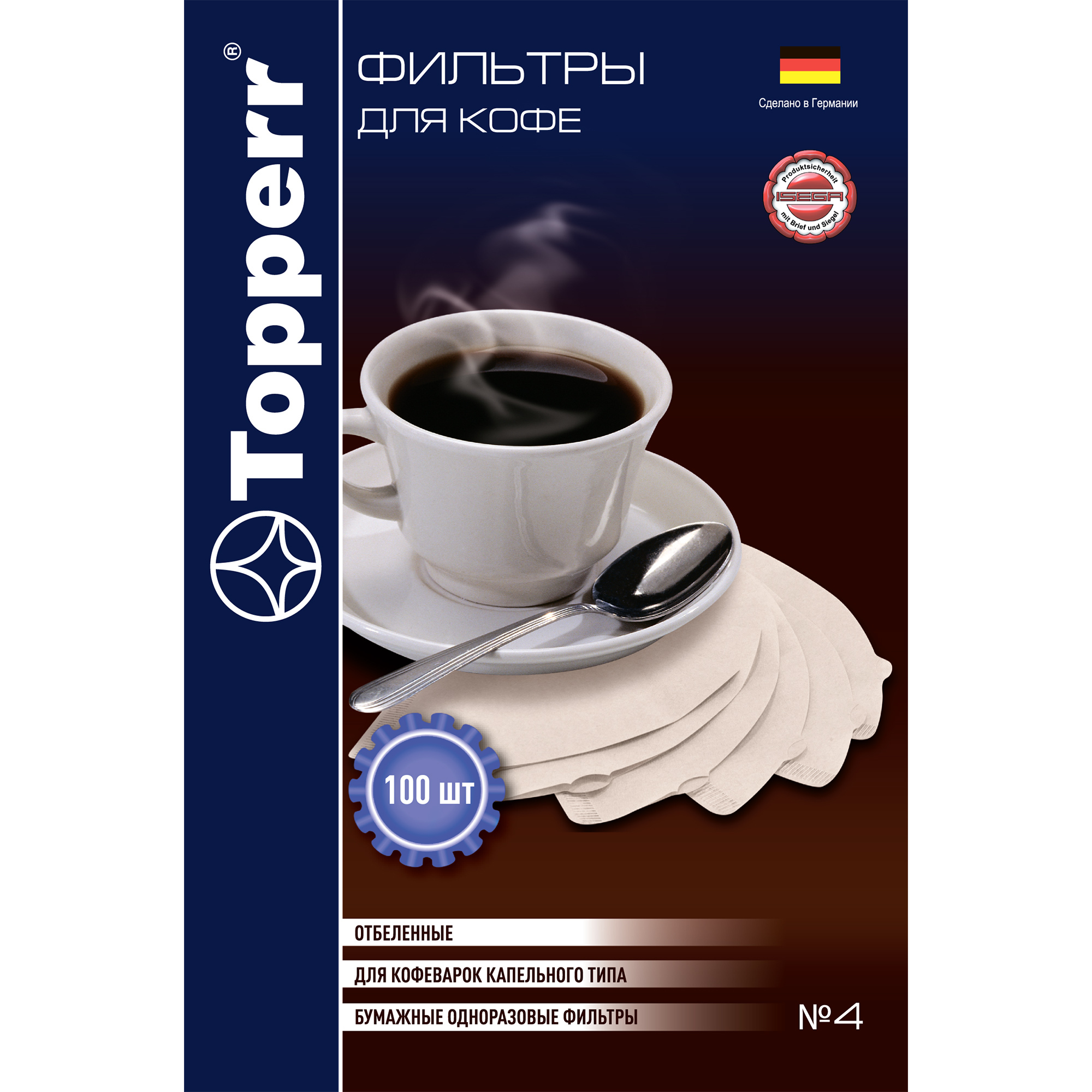 Фильтры для заваривания кофе белые Topperr №4, 100 шт