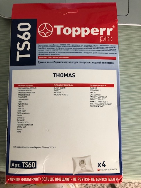 Topperr Пылесборник синтетический для пылесоса Thomas (4 пылесборника), 1413 TS 60
