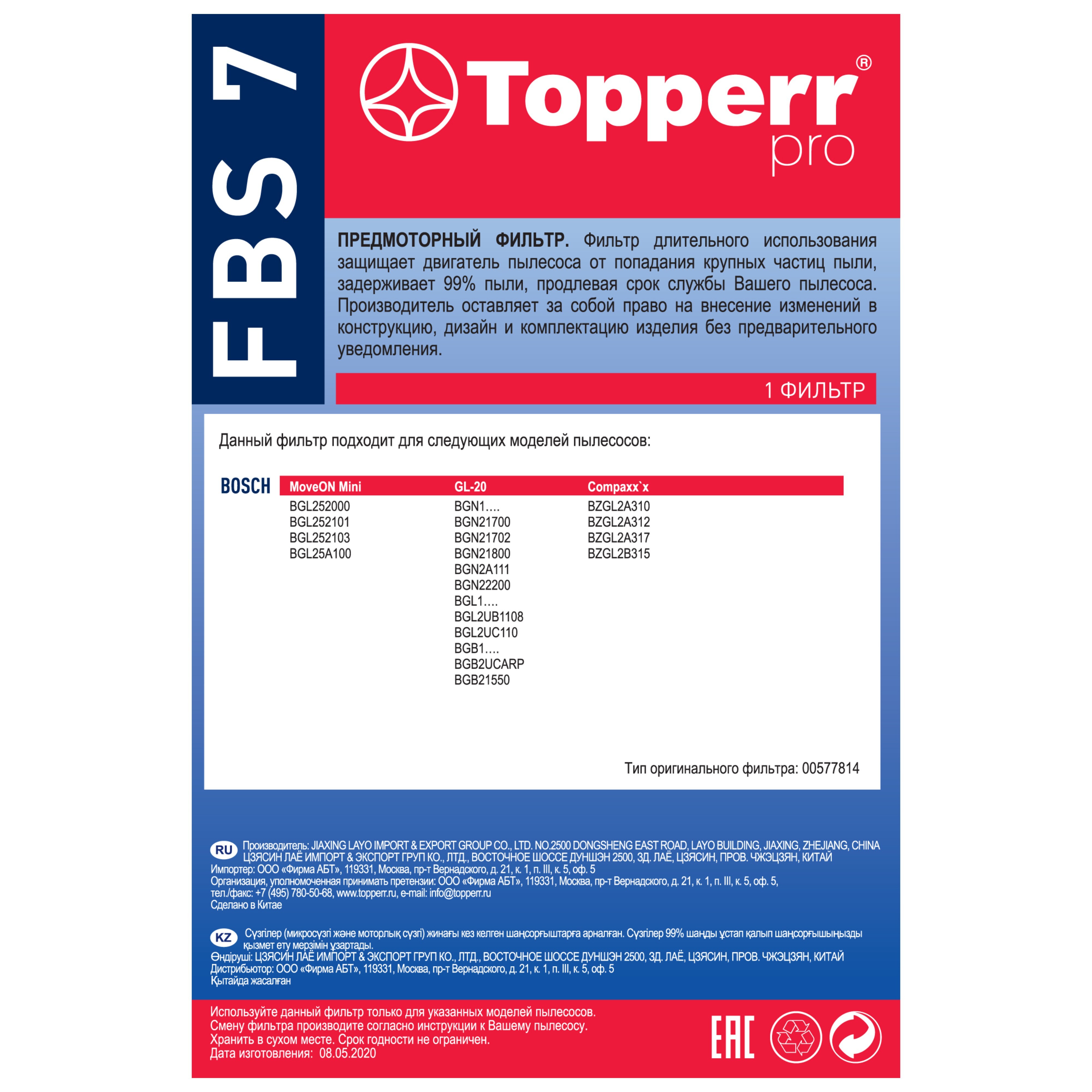 Комплект пылесборник и фильтр Topperr BS 20 для пылесосов Bosch/ Siemens 12+3 шт