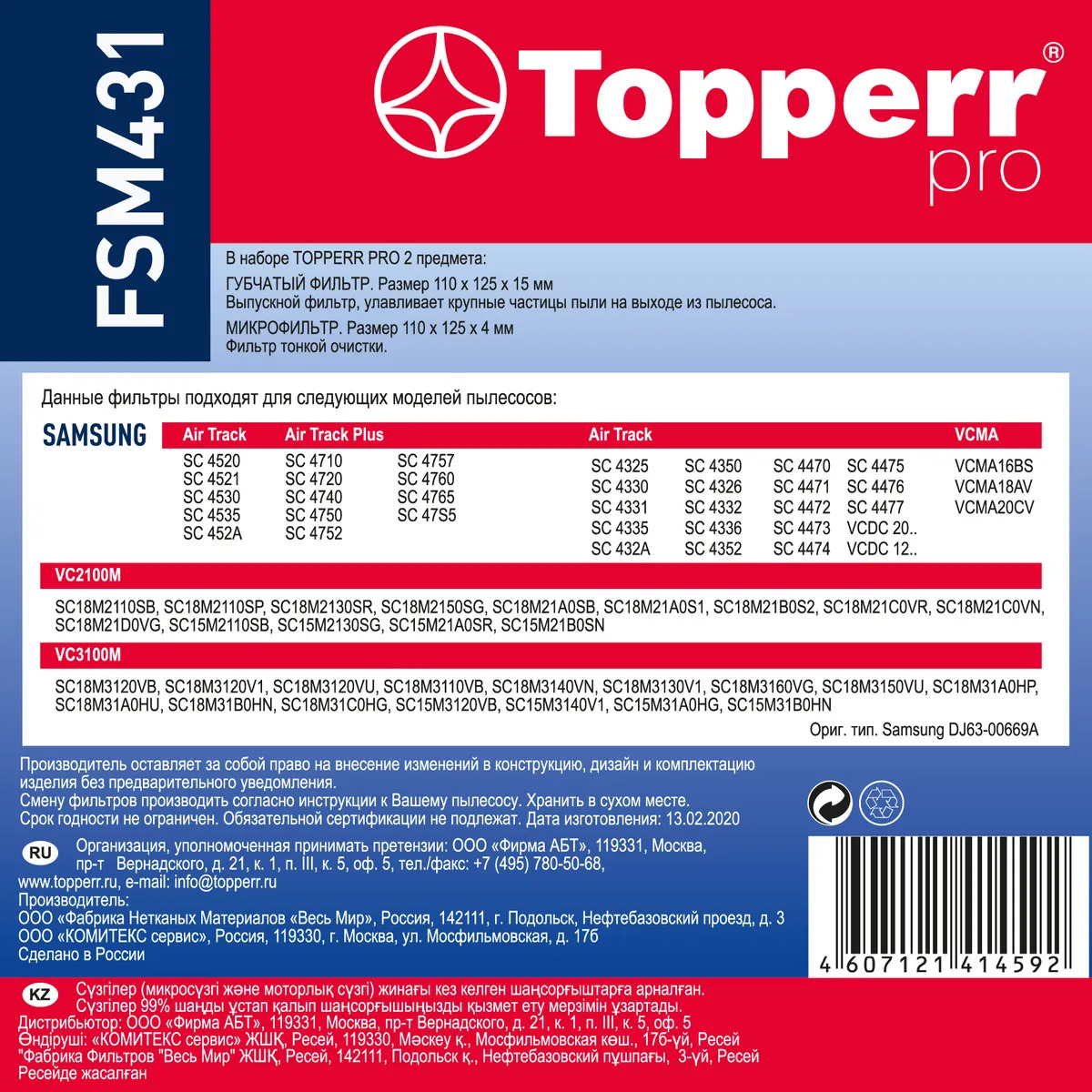 Стандартный фильтр Topperr FSM 431