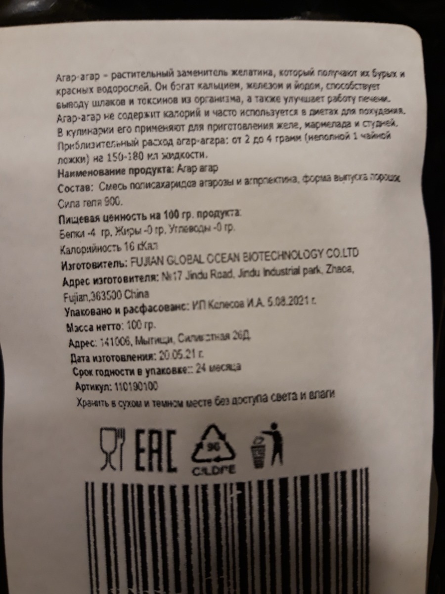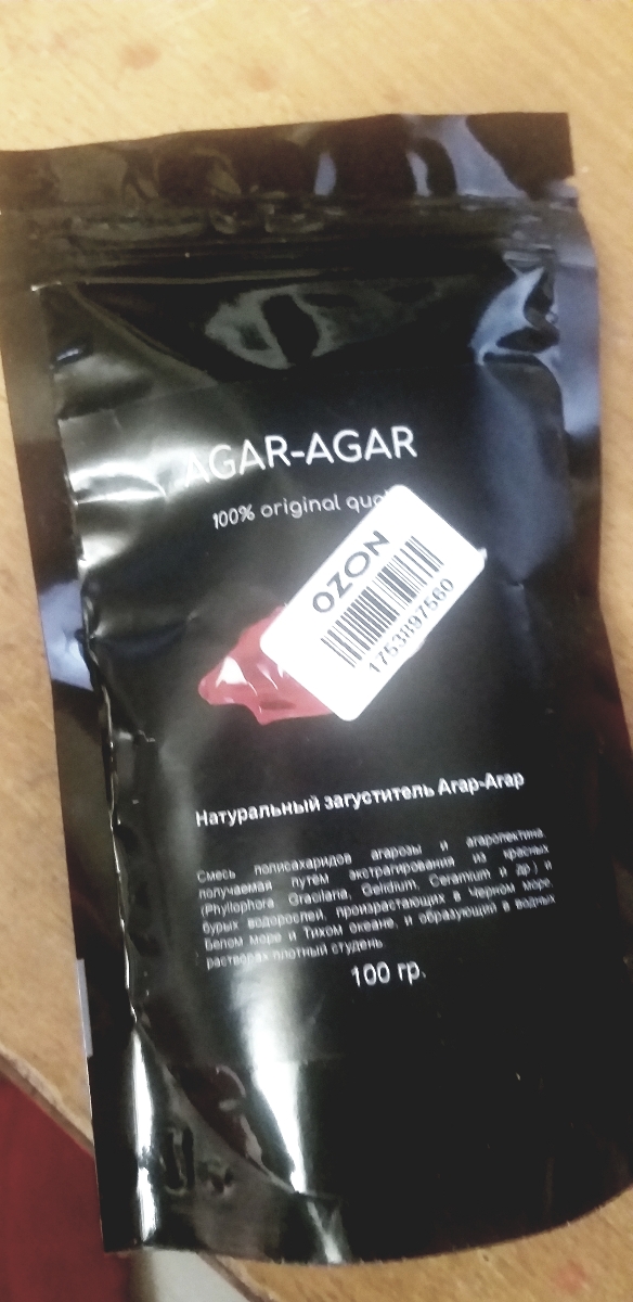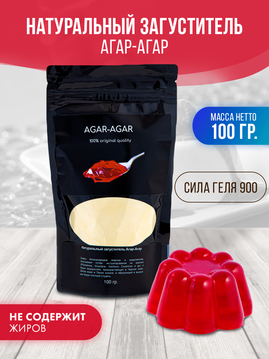 Агар-агар, натуральный пищевой загуститель. 100 гр. Сила геля 900.