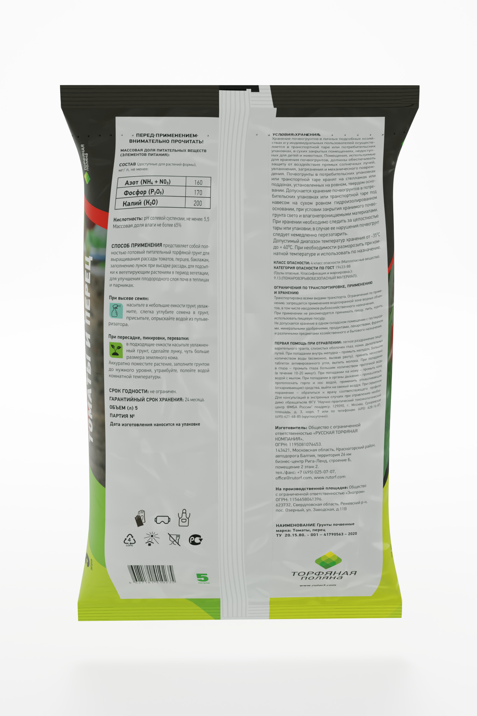 Питательный грунт "Томаты и перец" "Торфяная поляна" 5л