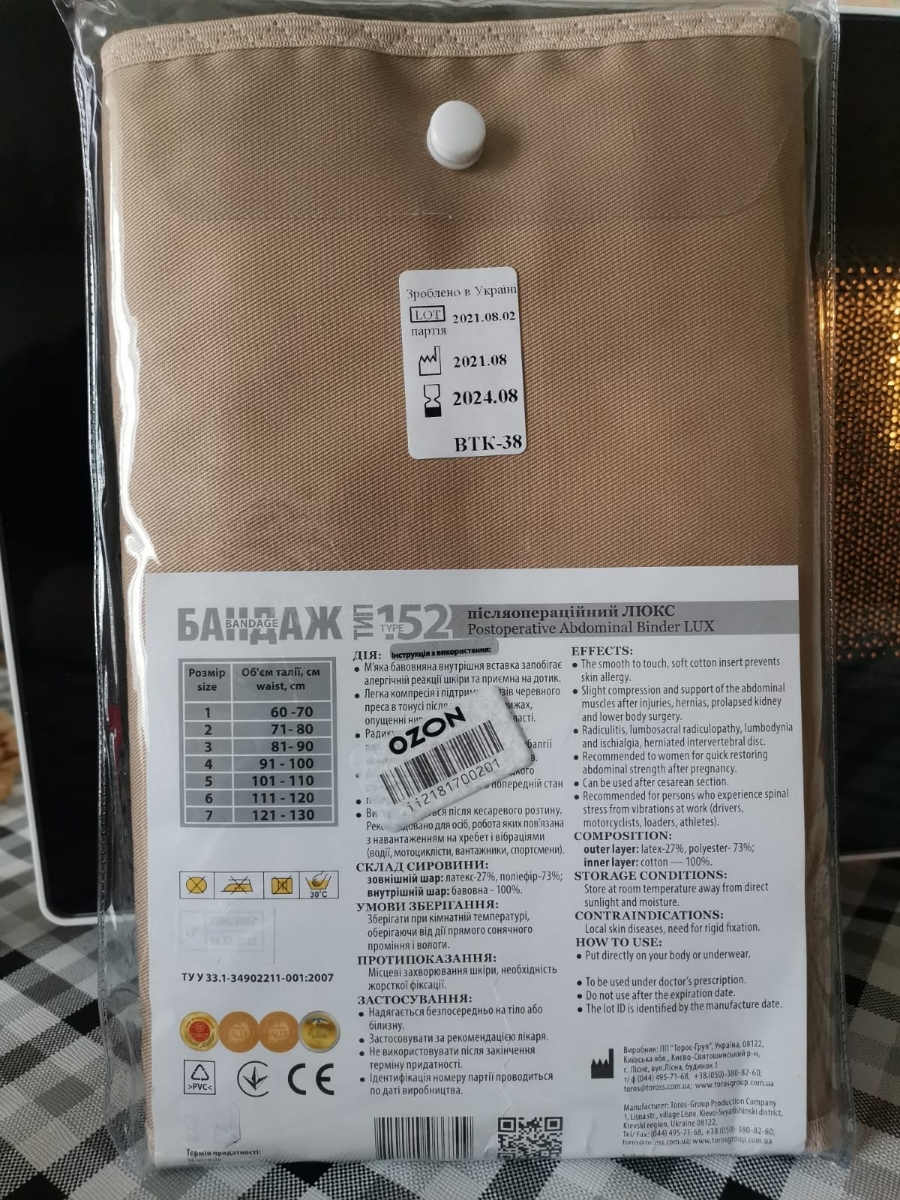 Бандаж, Размер 6, Послеоперационный, Абдоминальный Toros group